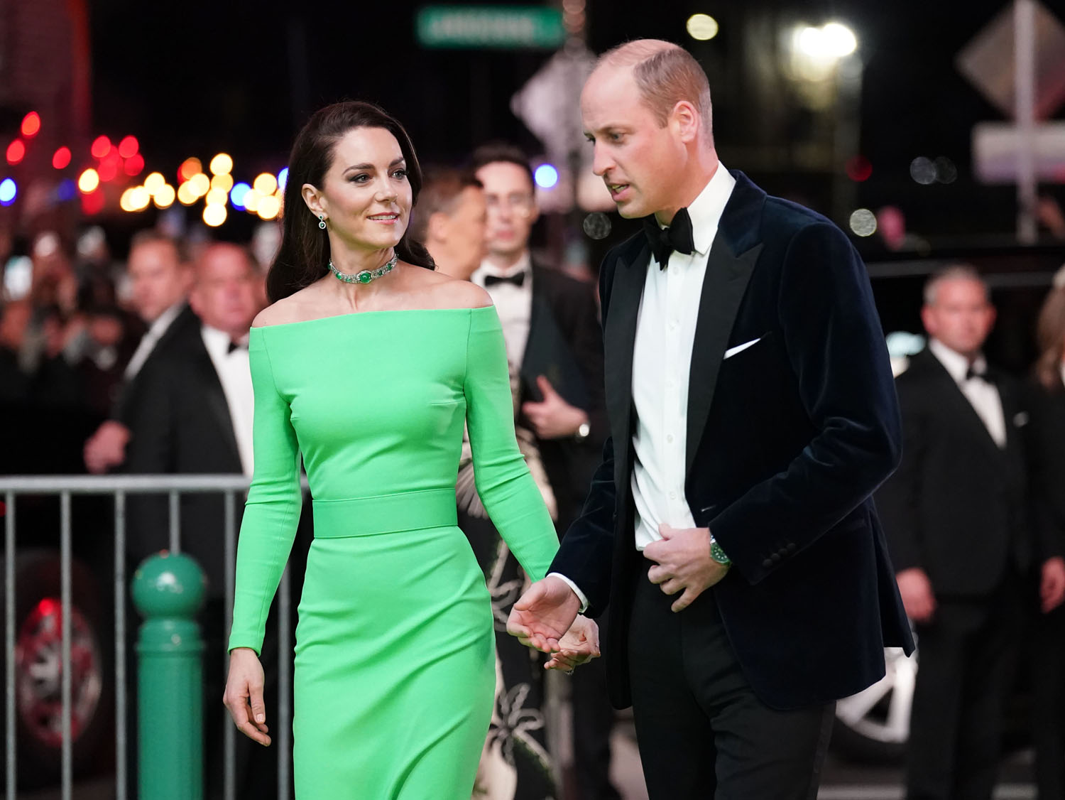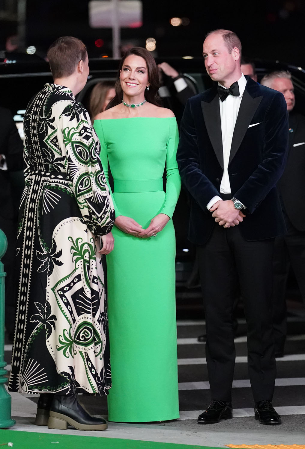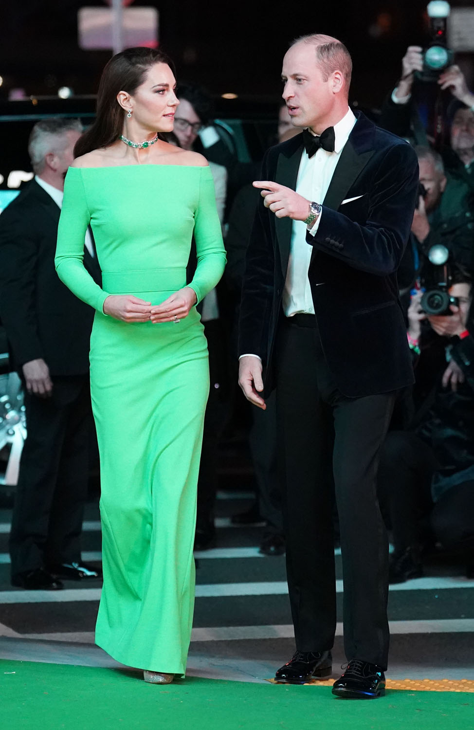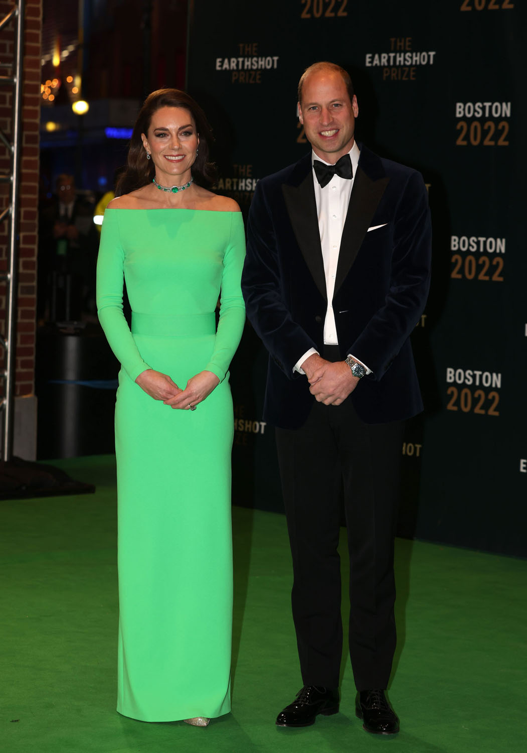 Kate showed up in a bright green dress that matched the green carpet. The dress was a rental because, of course, Earthshot is about environmental awareness and sustainability. Since joining the British royal family, Kate has often re-worn pieces so this is definitely in her wheelhouse, to borrow a look instead of getting into a whole new outfit.