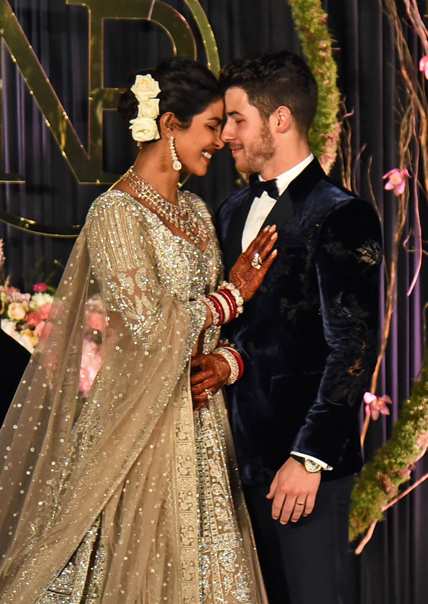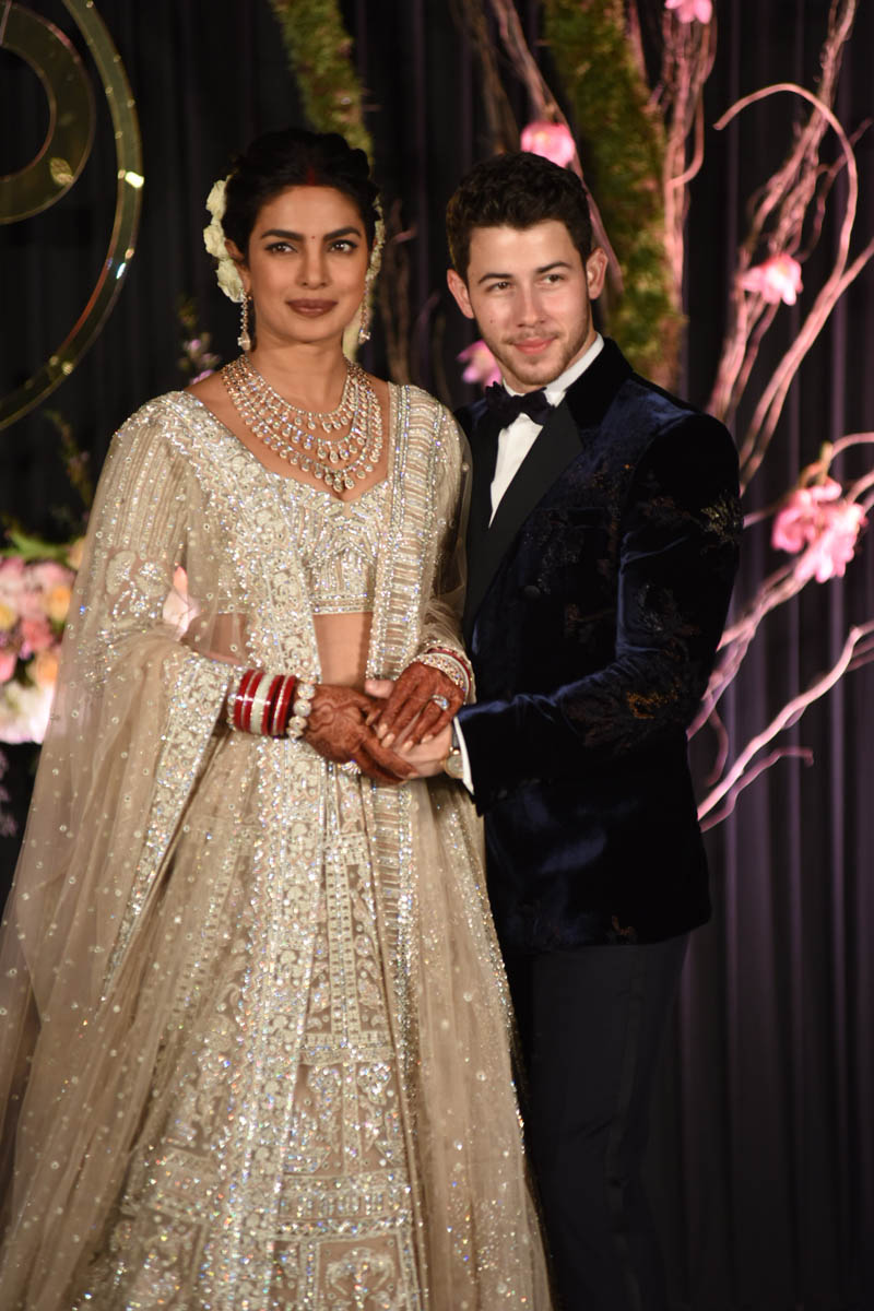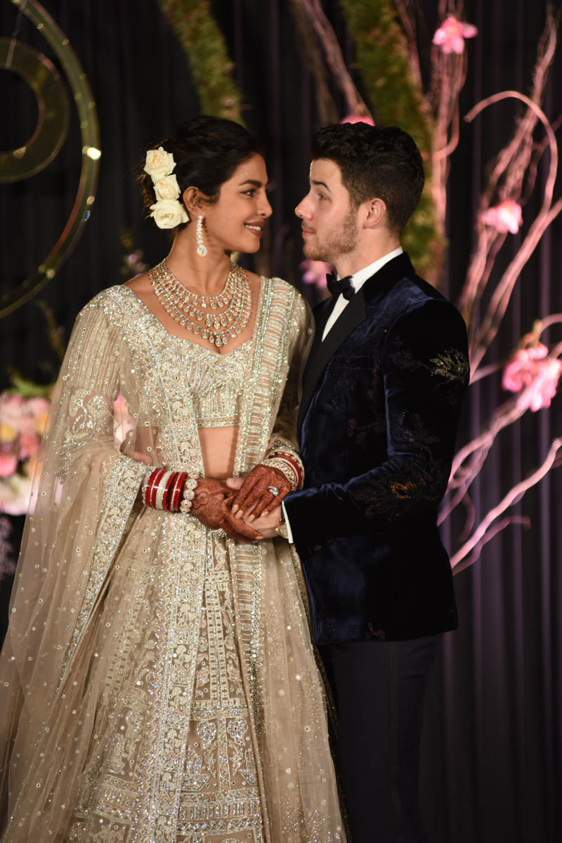 Priyanka Chopra was not messing around when she told Vogue that people would need a vacation after their wedding. Yesterday she and Nick Jonas hosted another wedding reception in Delhi at the Taj Palace Hotel. She was also trending for much of the day on Tuesday as the photos from their weekend wedding events were published in PEOPLE and HELLO!, including the video of her in her Ralph Lauren gown, walking towards him at the altar, with that overhead drone shot of her 75ft veil – in case you missed it: