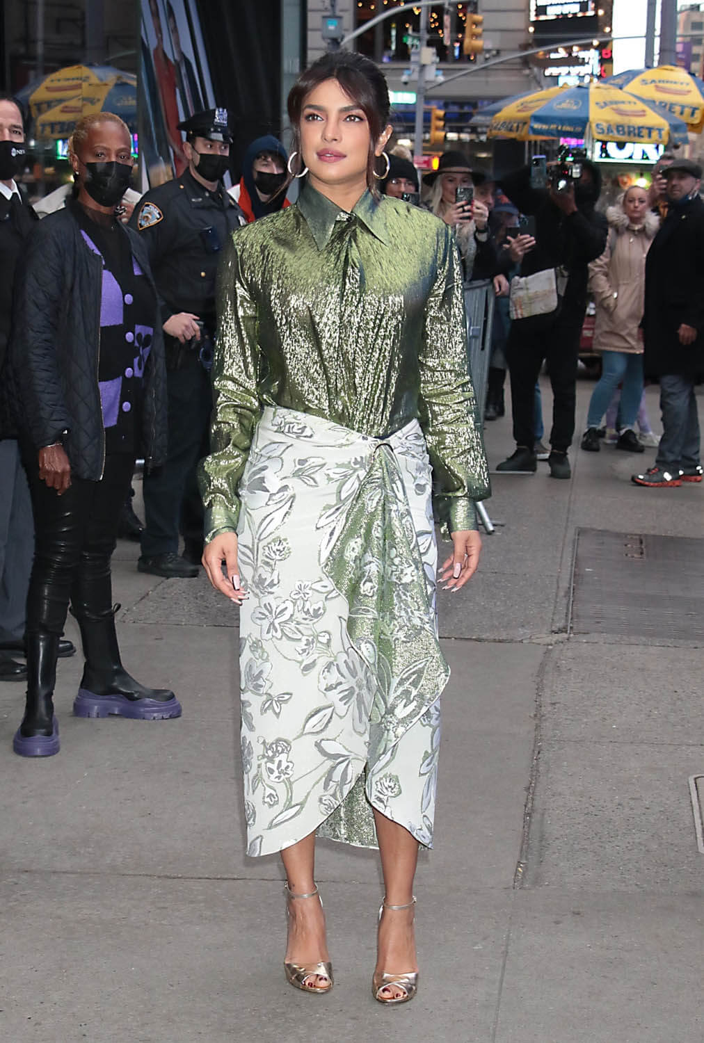 It’s one person and three outfits. Priyanka Chopra has also been out here promoting The Matrix Resurrections this week. It’s a high-profile movie. She’s in a high-profile town, New York City. And she’s styled by Law Roach. So of course the looks have been good.