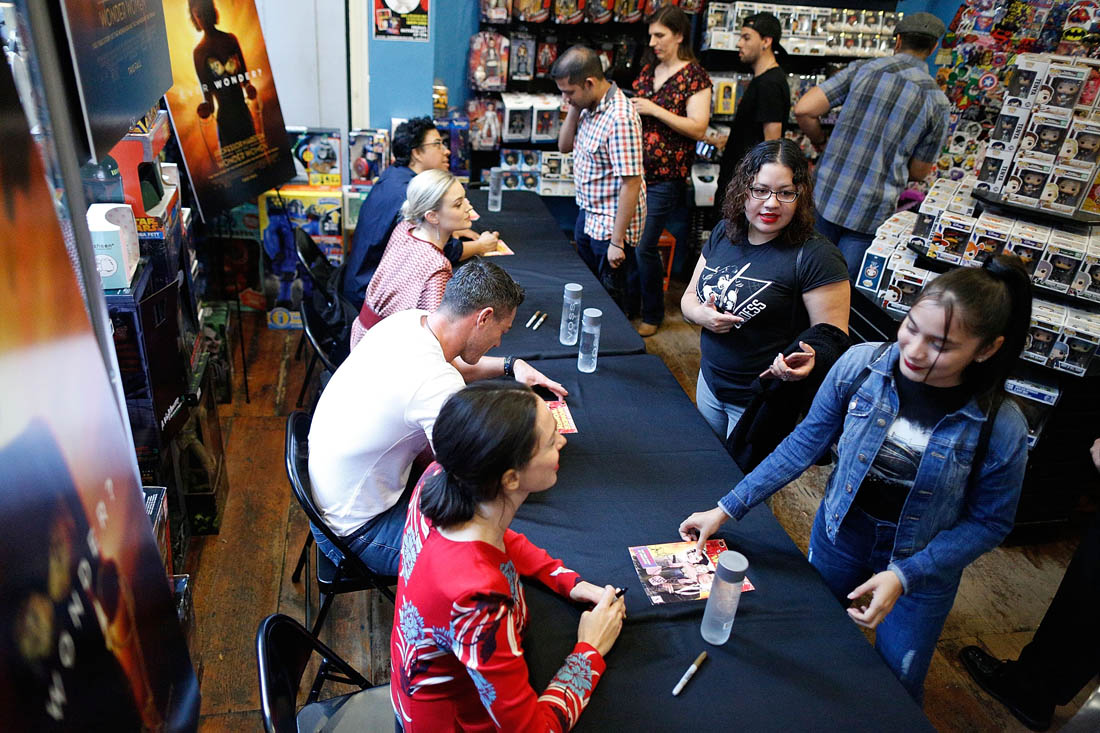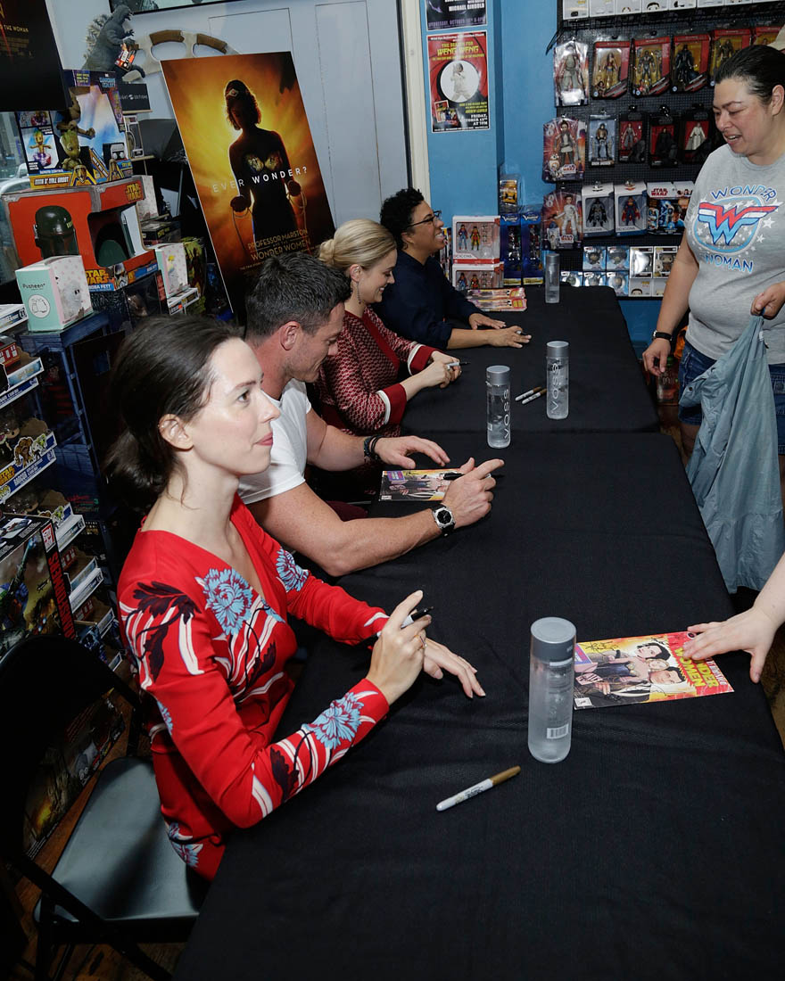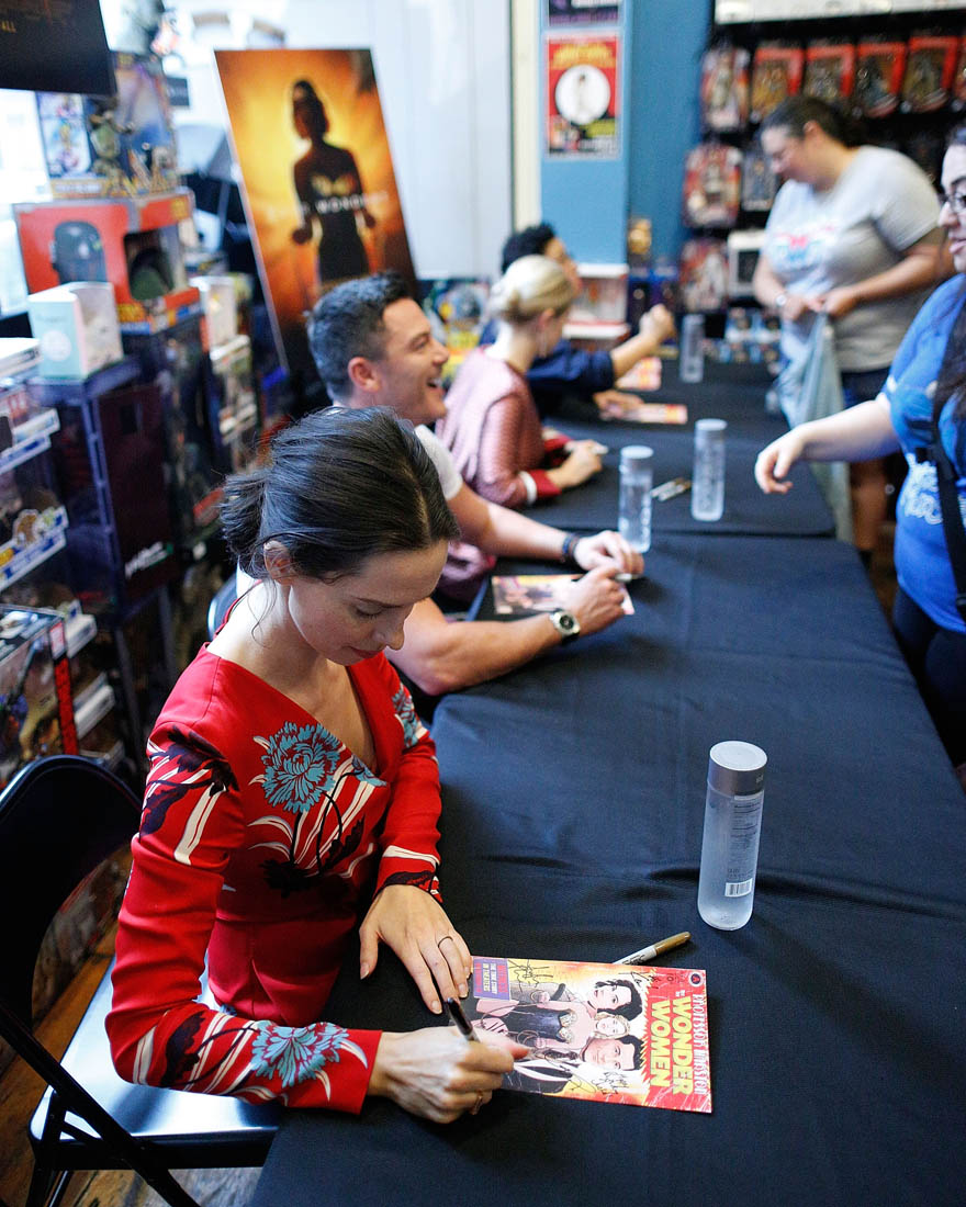 The film cuts between an interview between William and Josette Frank (Connie Britton), the director of the Child Study Association. She’s questioning the explicit sexual themes in the Wonder Woman comics, which prompts flashbacks which reveal William’s polyamorous relationship and interest in BDSM and bondage. Written and directed by Angela Robinson (The L Word, True Blood), one of the best elements of Professor Marston is how Diana’s origins are woven into those flashback scenes. Olive wears a pair of silver cuffs reminiscent of Diana’s bracelets; the first tryst between William, Elizabeth, and Olive takes place in a theater, where Olive dons a Grecian gown; and later, Olive dresses in a bustier and tiara, revealing the famous Wonder Woman silhouette.