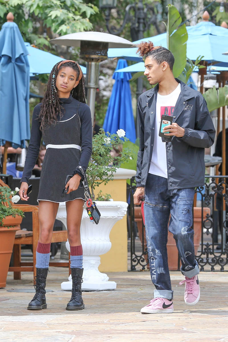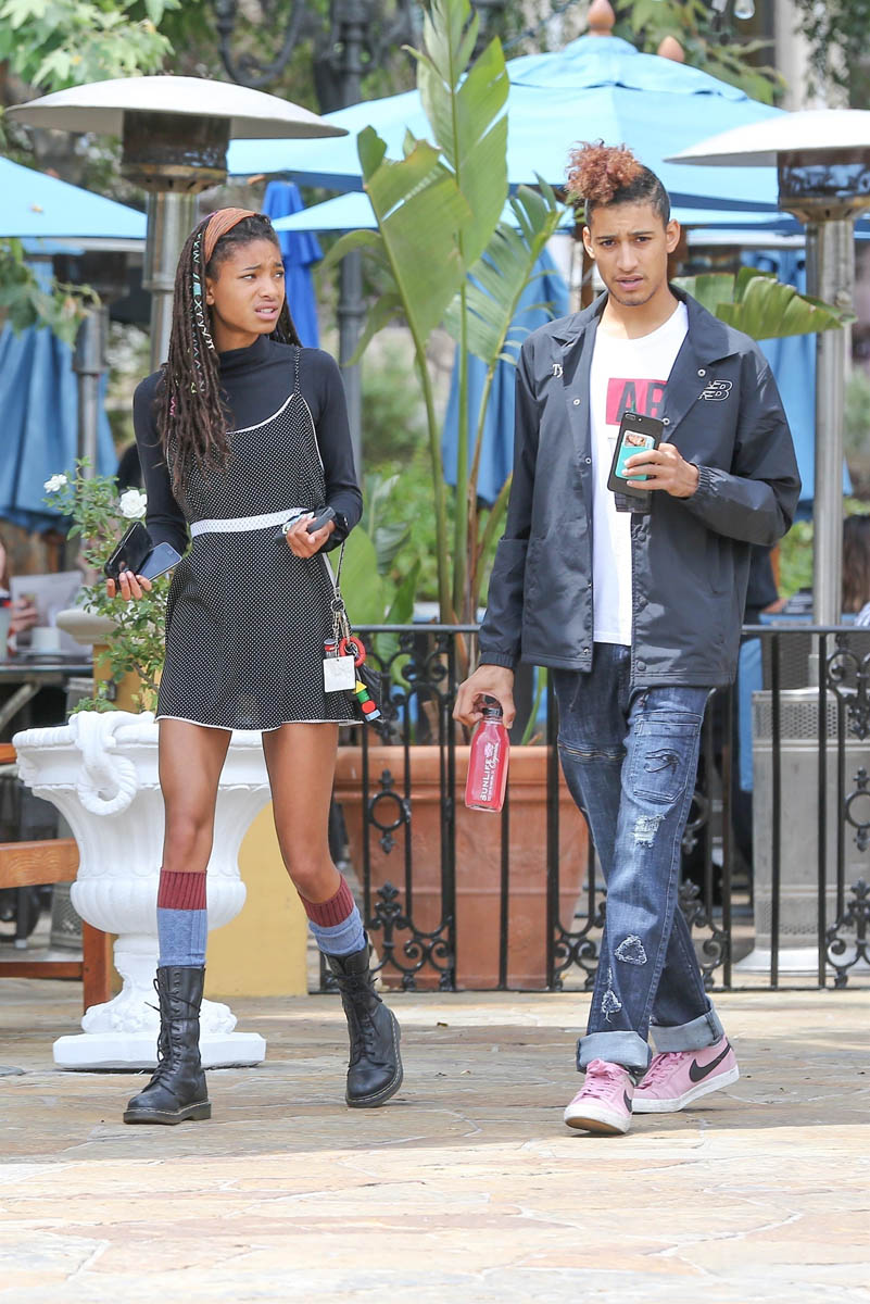 Earlier today Kathleen posted about Jaden Smith going to prom with his girlfriend Odessa Adlon. Kathleen, as noted, is obsessed with prom. I wouldn’t say I’m as obsessed as she is with prom (I didn’t cry at prom, God), but I am very interested in teen life. And prom is, for many teens, an essential part of the average North American teen experience. So Jaden’s been to a couple of proms. But here’s Willow Smith today with her boyfriend Tyler Cole... and Willow is 17 right now, which is prom age. Will Willow go to prom?