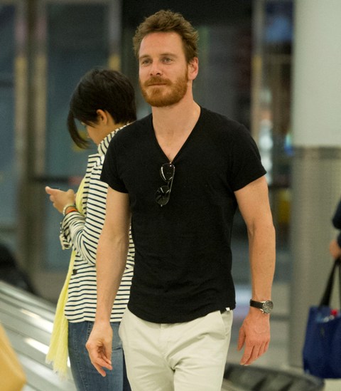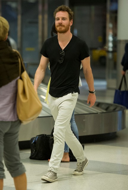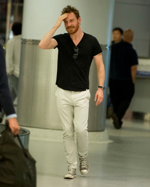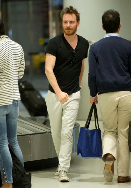 Attached - a sleepy looking Michael Fassbender at JFK airport earlier this week.