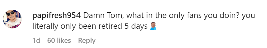 A newly single former pro athlete aimlessly navigating his 40s… Tom Brady just became the poster for that character. And the irony here is that, well, he used to be married to one of the great supermodels of our time. Taking a good picture is literally her job. Had Gisele Bundchen been in his life when this image was taken, we would have gotten a much higher quality shot.