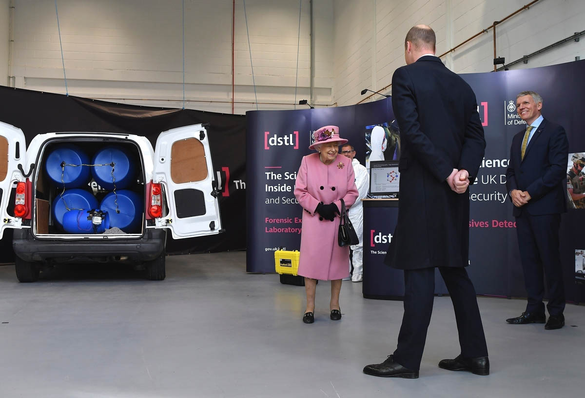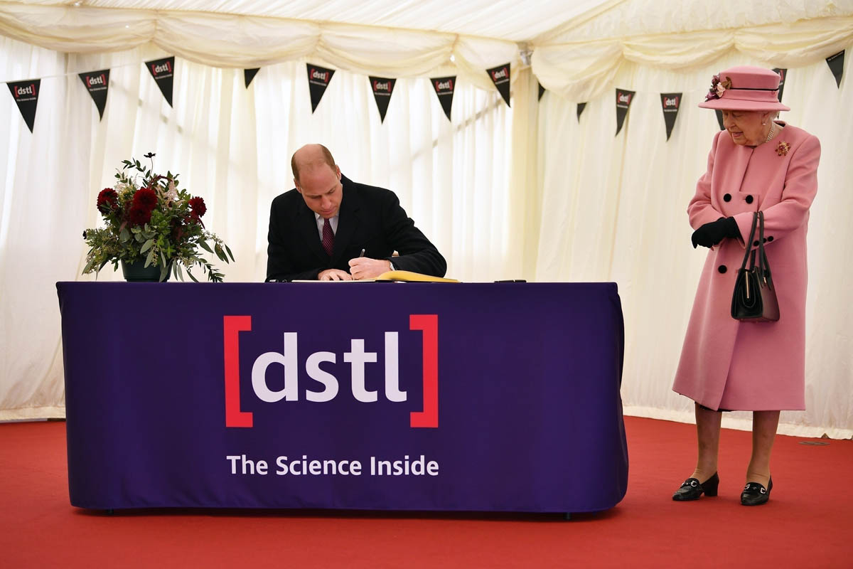 First engagement outside a royal residence for the Queen since March, who is currently at @dstlmod with Prince William to tour their new Energetics Analysis Centre and meet scientists working on the coronavirus response and in counter terrorism/security. https://t.co/yi916fKymL