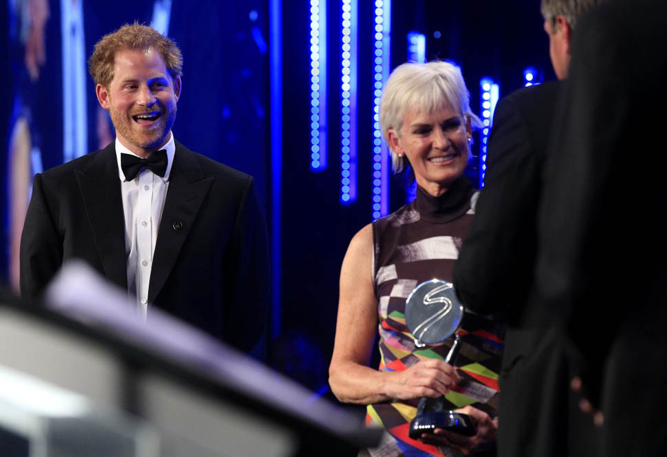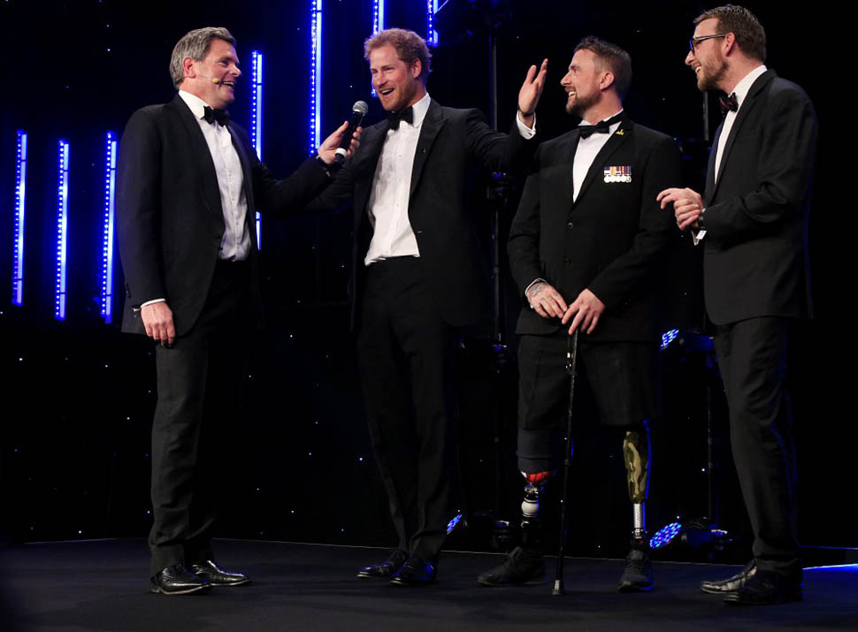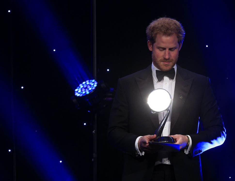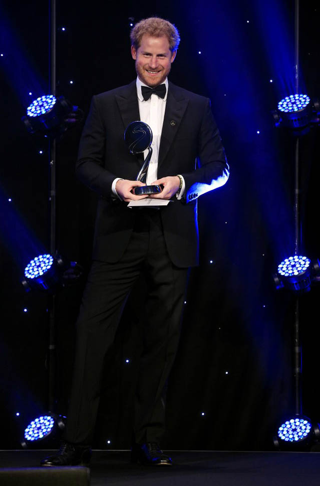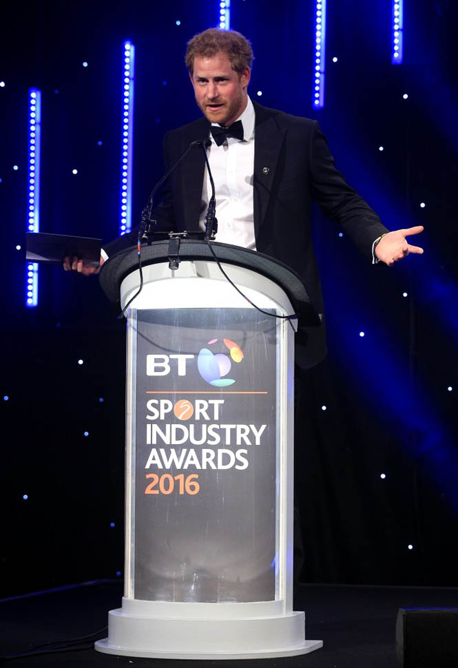 Attached – more shots of Harry from last night’s BT Sport Industry Awards. Look at him working that podium. And a separate shot with a cocktail in hand. That’s allowed?