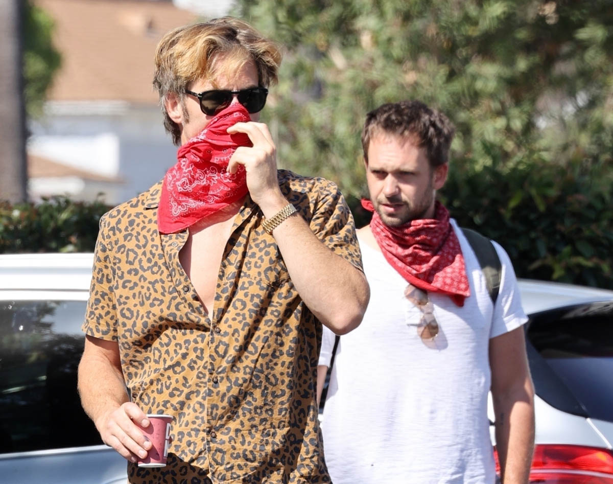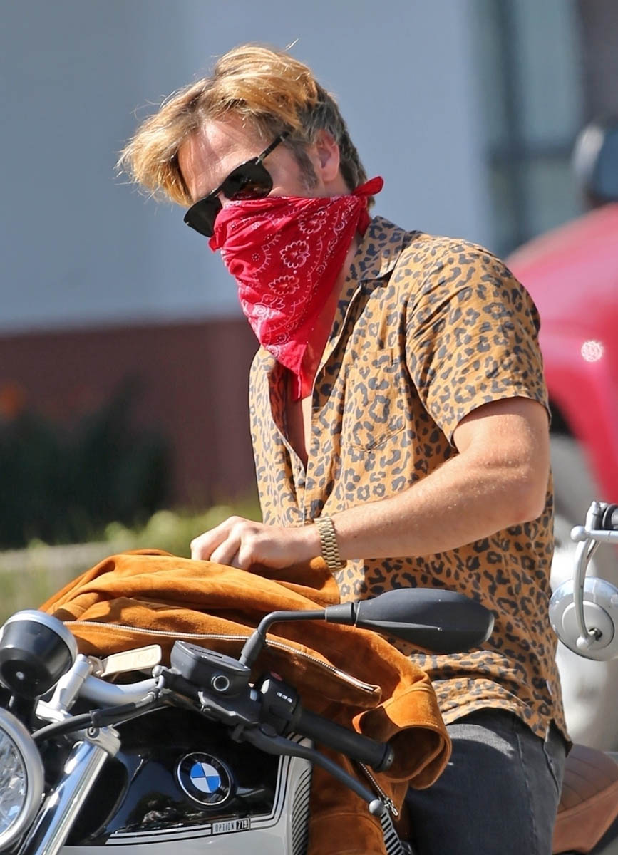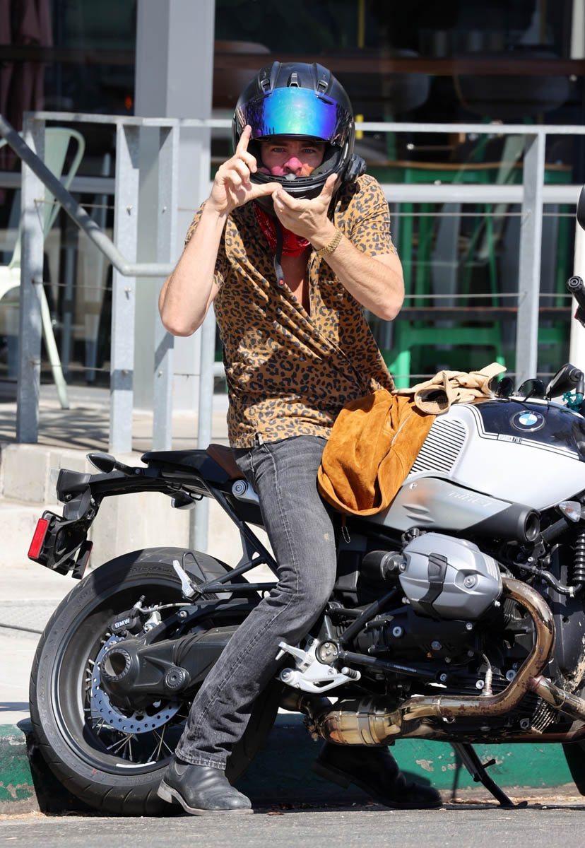 It was Chris’s birthday on Wednesday. He’s now 40 years old. To celebrate he went for a ride with Patrick J Adams who celebrated his birthday yesterday. I see that leopard print shirt is making another appearance and worn Matthew McConaughey styles, LOL.