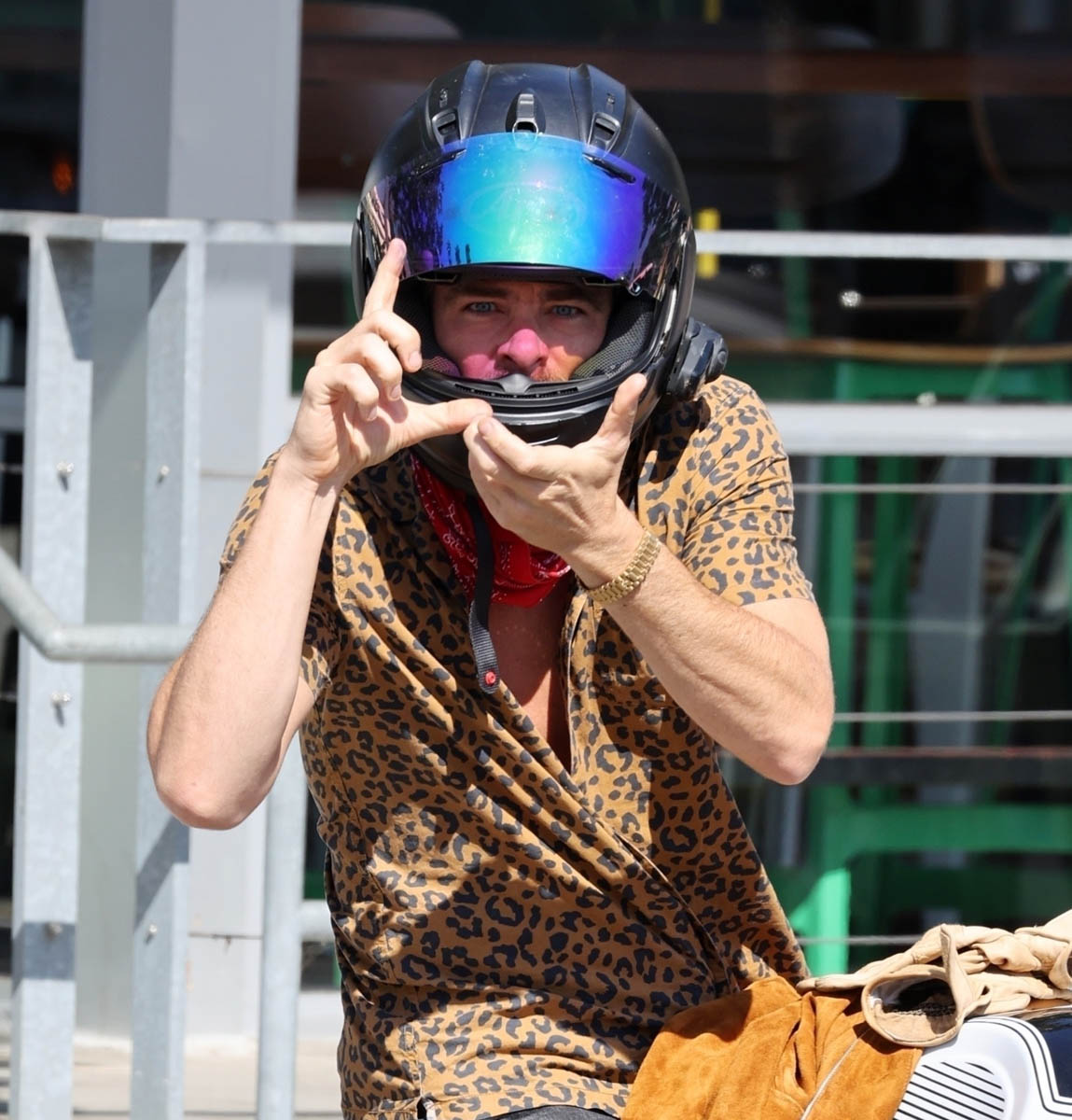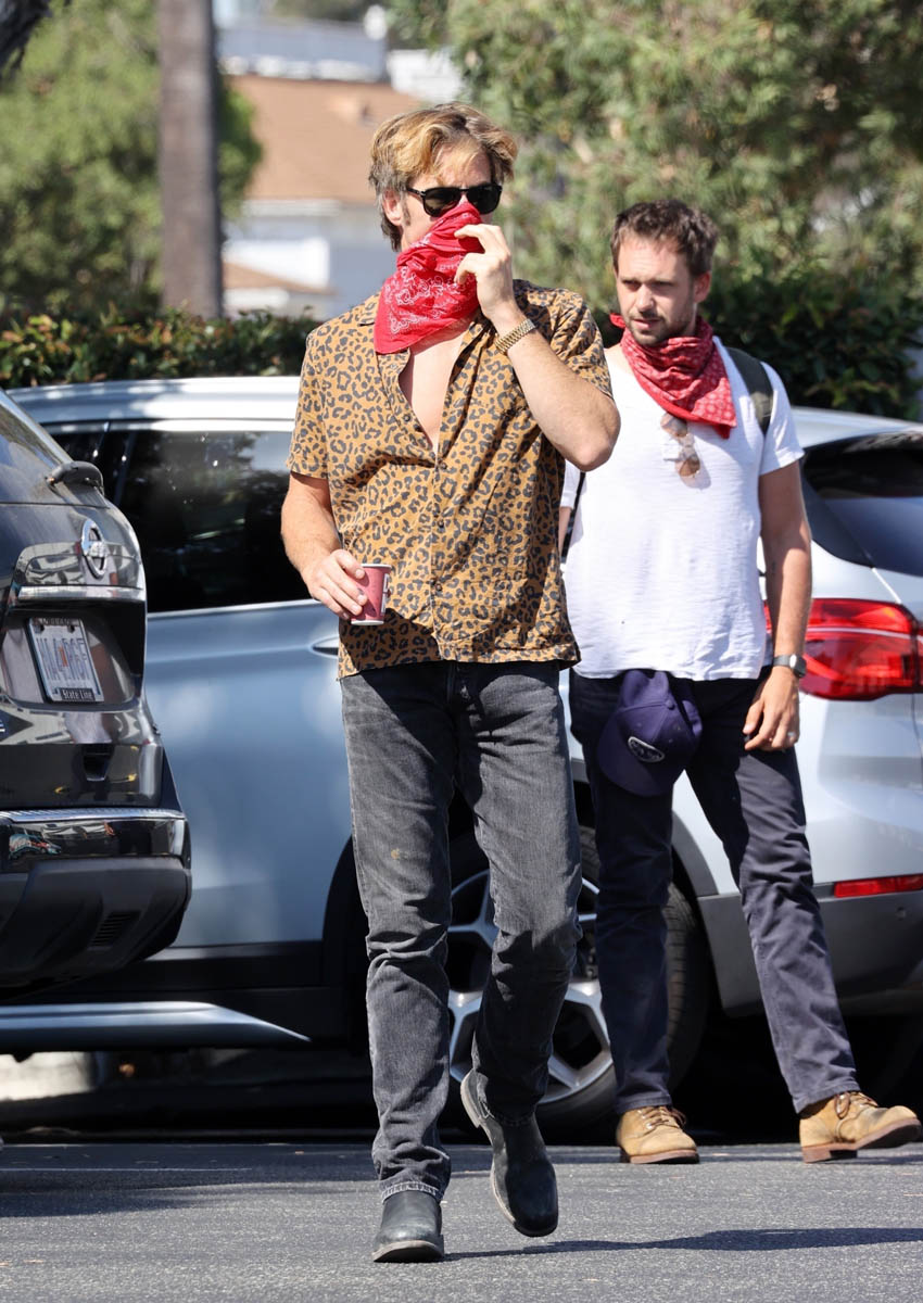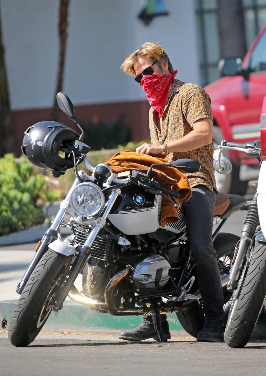 It was Chris’s birthday on Wednesday. He’s now 40 years old. To celebrate he went for a ride with Patrick J Adams who celebrated his birthday yesterday. I see that leopard print shirt is making another appearance and worn Matthew McConaughey styles, LOL.