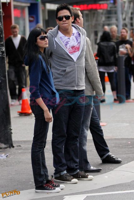 These are members of the pulchritudinous Quileute Nation out and about Vancouver recently– young BooBoo Stewart with a new haircut, Chaske Spencer and the rarely seen and very beautiful Tinsel Korey. She’s stunning.