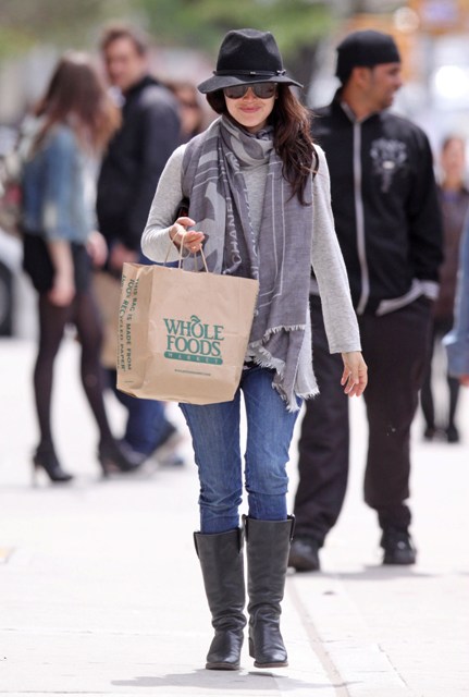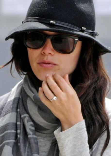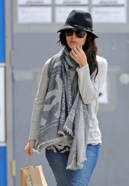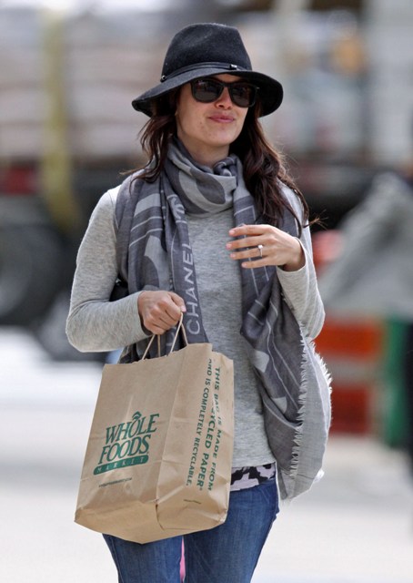Rachel Bilson today in New York shopping at Whole Foods and giving us a very good shot of her engagement ring.