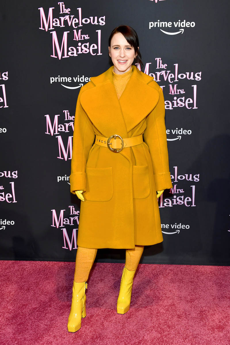 Rachel Brosnahan’s promotional wardrobe for the new season of Mrs Maisel is strong. My favourite is the Valentino pyjama-ish set with the mary-janes but this monochrome mustard look is excellent too. I do agree with the Fug Girls though about the boots. I don’t mind the colour – the colour is great – but it’s the shape of the toe that bothers me. (Go Fug Yourself)