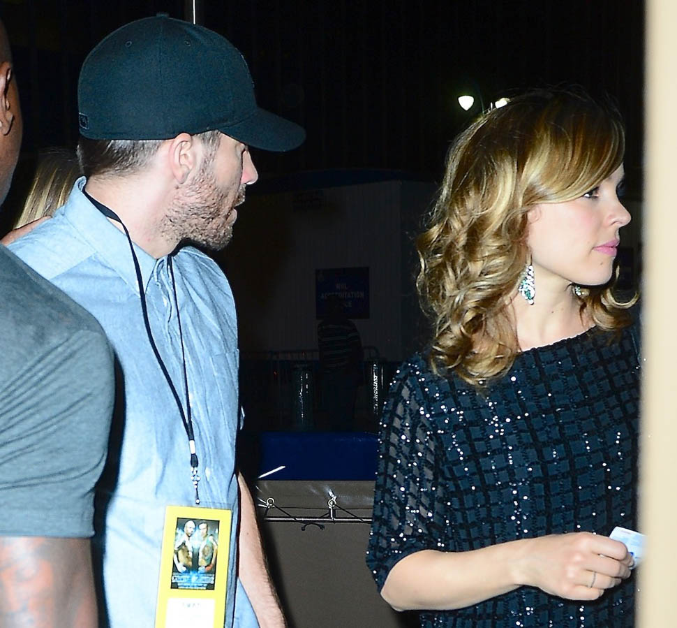 Last week, Rachel McAdams and Jake Gyllenhaal were seen together at dinner in Pittsburgh. Click here for a refresher. They’re working on a film, Southpaw. The movie is about boxing. There was a big boxing match on Saturday night at Madison Square Garden, Cotto vs Martinez. And they were both there, apparently to research their roles.