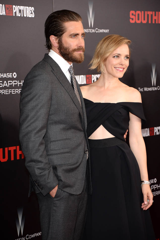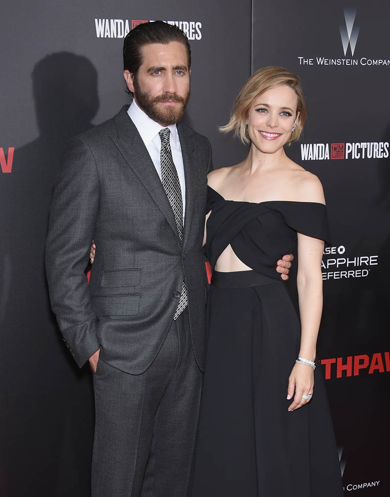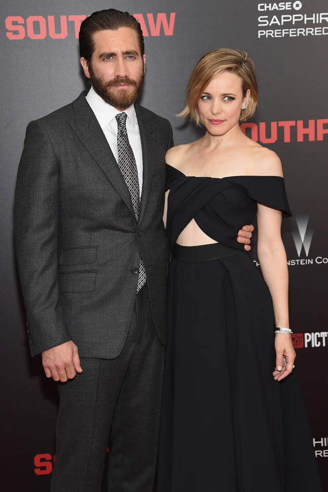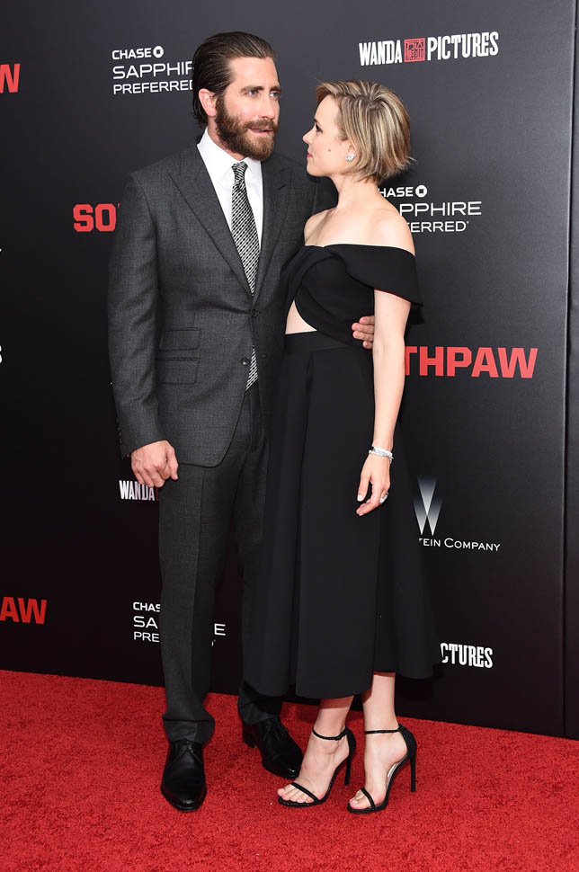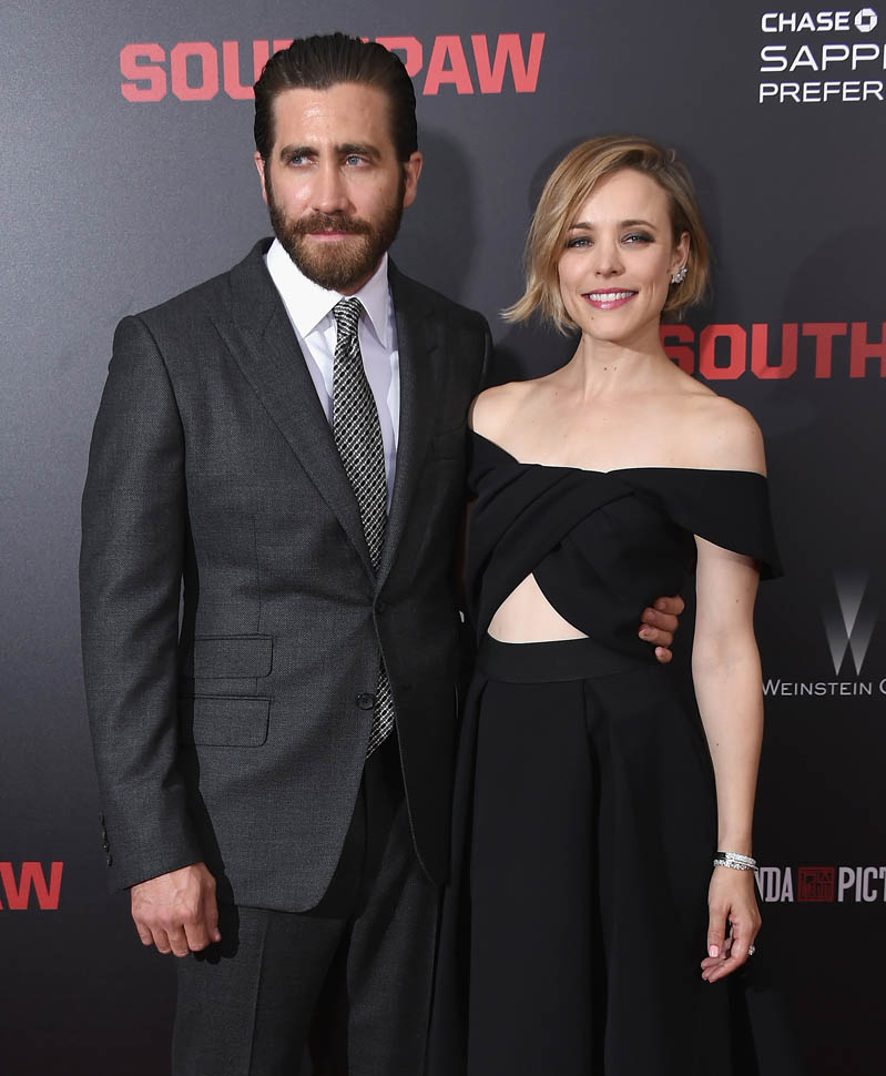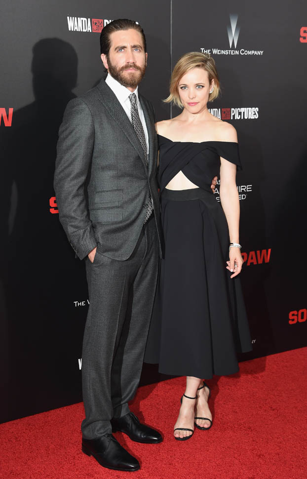 Last night Rachel was in New York with Jake Gyllenhaal for the premiere of Southpaw wearing the sh-t out of this Self-Portrait two-piece. It might be my favourite outfit on her of all time. Southpaw comes out this weekend. Click here to read Joanna’s review from last week, consistent with critics who call the story generic but also recognise Rachel and Jake Gyllenhaal’s performances. They’re certainly promoting it harder than they’ve promoted anything in a long time, especially Jake. He showed up in Detroit the other night with Eminem at a screening. He put on an apron last week in Miami. Tomorrow he’ll be on Jon Stewart. Apparently he’ll return to Good Morning America next week, and they probably won’t play a Taylor Swift song during his interview. Jake is hustling. Because a solid box office will help those nomination chances. And he’ll need whatever advantage he can get before the major contenders are released in the fall.