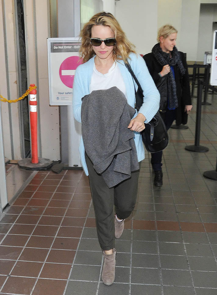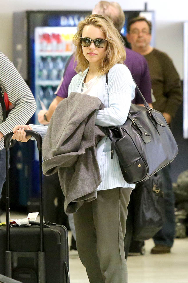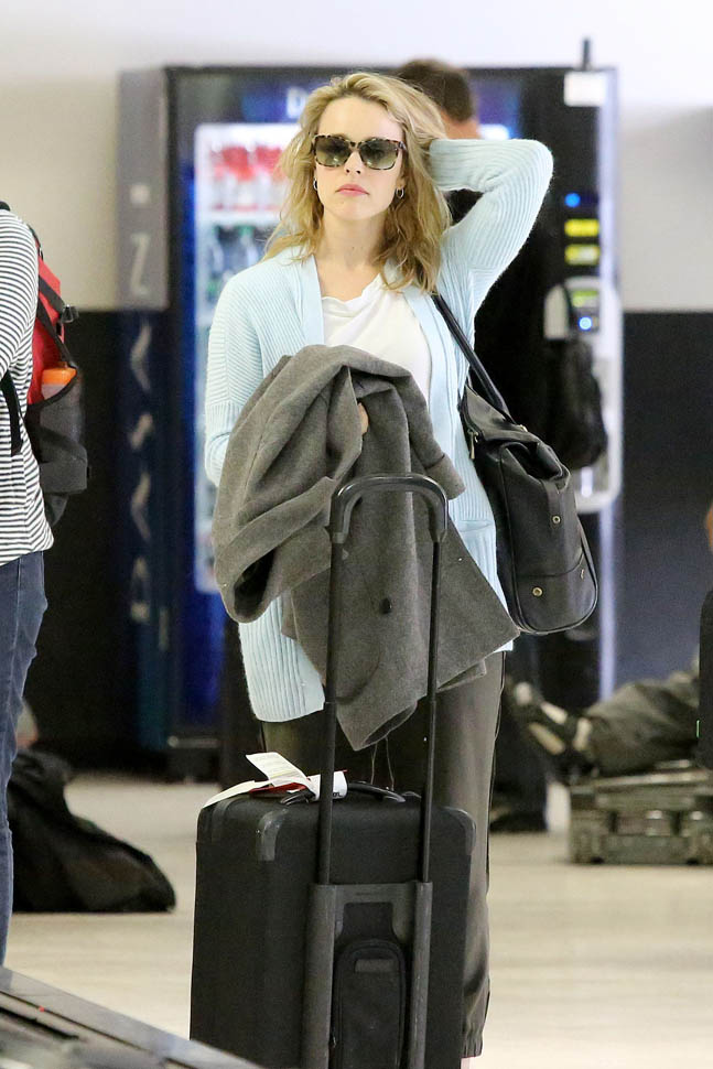 Rachel McAdams arrived in LA yesterday, one day after her birthday. We’ll come back to that in a minute. Let’s first talk about those shots of her in Toronto on the set of Spotlight. As you saw, I updated yesterday’s post (click here for a refresher) about whether or not that was Patrick Sambrook, as identified by the photo agency and other outlets like E! News, etc. The man in question is Duane Murray, an actor on the film. So go ahead and assume she’s single now. I’m looking at you, Jake Gyllenhaal.