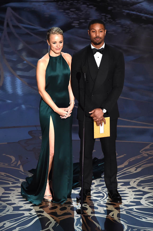 Rachel McAdams presented last night with Michael B Jordan. MBJ did not walk the carpet. So there are very few shots of him, which is disappointing because, hello, he’s Michael B Jordan. Anyway, after they presented all kinds of people tweeted at me about Gossip Genie’ing the two of them together because, indeed, they did look really cute together. But that’s not my wish. Because Rachel McAdams has rebranded. She and MBJ are not in the same Hollywood place.