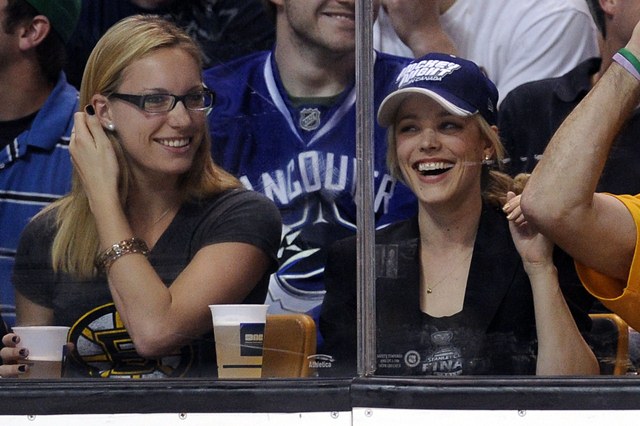 Rachel McAdams was in Boston last night to watch the home team tie up the series at 2 leaving the Canucks shaken as they head home to regroup for Friday’s game at Rogers Arena where I will be, sitting in a tense arena. I know some people are angry that Rachel was cheering for the Bruins. Michael J Fox is also cheering for the Bruins, and he’s from BC. But he’s tight with Cam Neely. Maybe Rachel, or someone in her family, has a personal connection to the Bruins too.