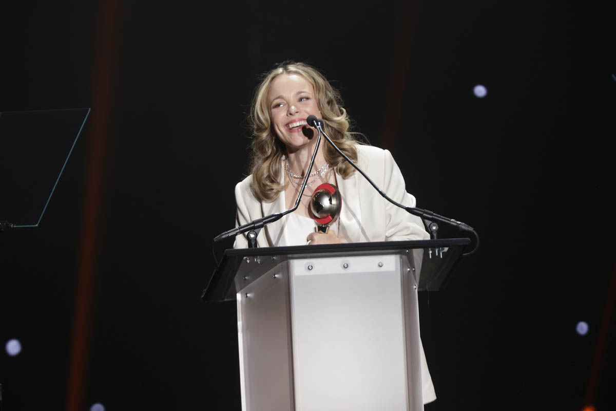 CinemaCon used to be called ShoWest. The function of the event is the same, they just rebranded it in 2010. Back when it was still ShoWest though, Rachel attended a few times – including in 2005 when she was named Supporting Actress of the Year. Here she is with her award: