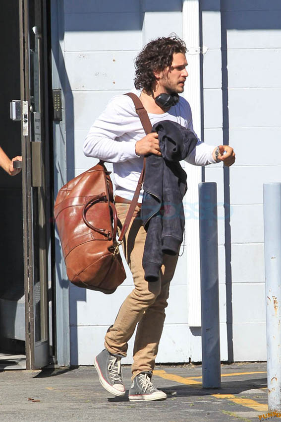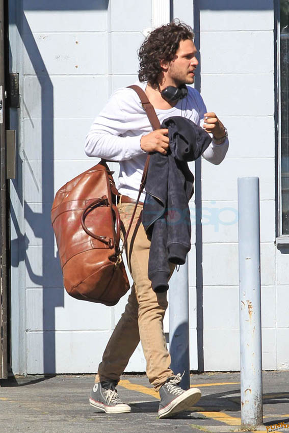 Oh, and since so many of you are wishing for it to happen, here’s Kit Harington leaving Vancouver yesterday after a busy day of reshoots on The Seventh Son. He was heading back to Toronto to resume work on Pompeii.