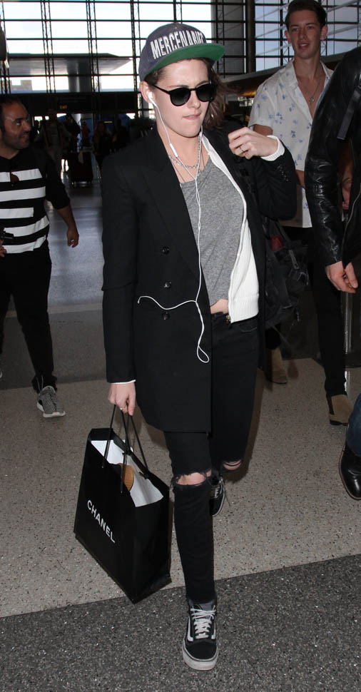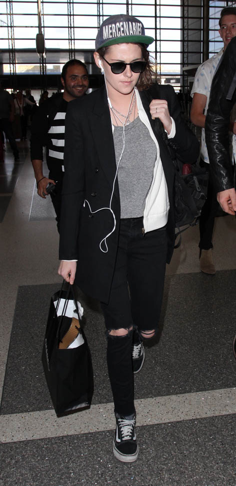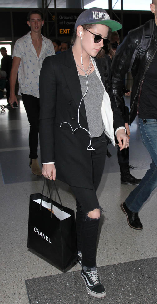 Attached - Kristen at LAX yesterday and at Marie Claire's Image Maker Awards earlier this week.
