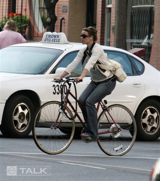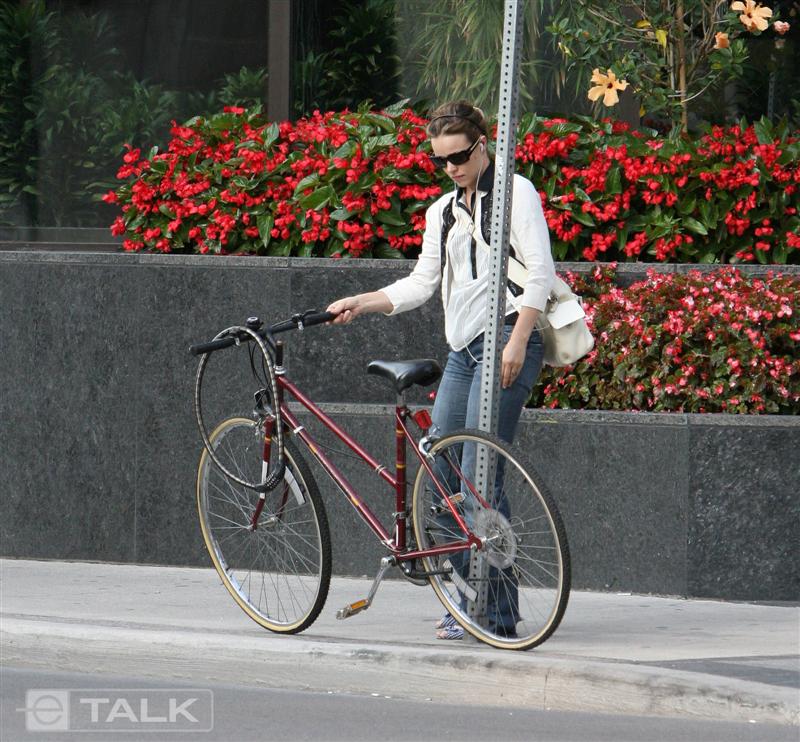 But back to the bike – here is one of the most sought after actresses…and she chooses to live at home, away from LA, and casually pedal around town without the assistance of a driver or a personal umbrella handler or a skank ass mother who’s on the payroll.