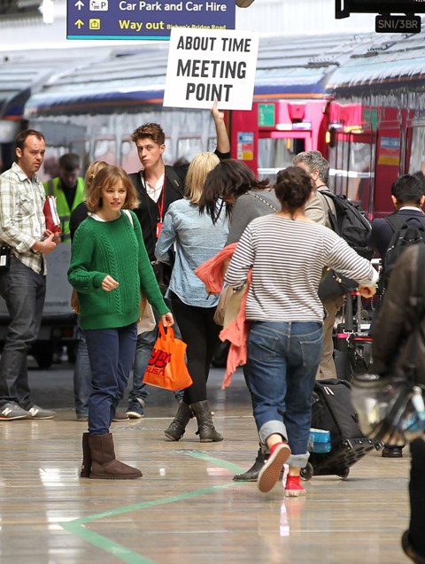 Here’s Rachel McAdams at Paddington Station in London today where she’s shooting Richard Curtis’s About Time. You know his previous work: Four Weddings & A Funeral, Notting Hill, Love Actually...
