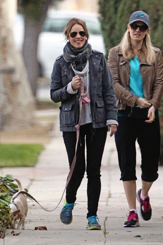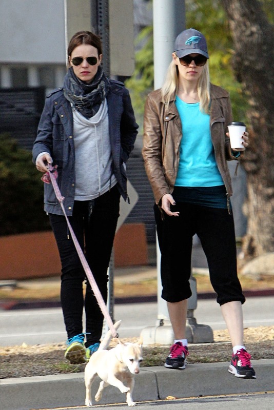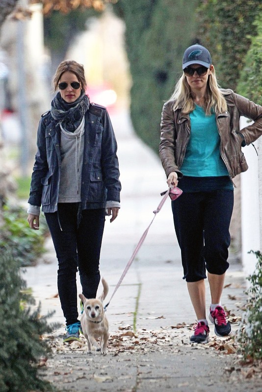 Rachel McAdams is in LA, walking a dog with her sister. Her dog? Not sure. Possible. You can easily travel a chihuahua. It's -20 in Toronto today and there's no windchill. So, if I were her, I'd probably stay a few days in gross LA too, just until this polar vortex passes.