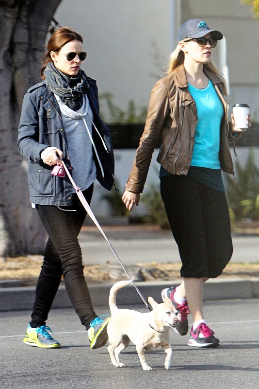 Rachel McAdams is in LA, walking a dog with her sister. Her dog? Not sure. Possible. You can easily travel a chihuahua. It's -20 in Toronto today and there's no windchill. So, if I were her, I'd probably stay a few days in gross LA too, just until this polar vortex passes.