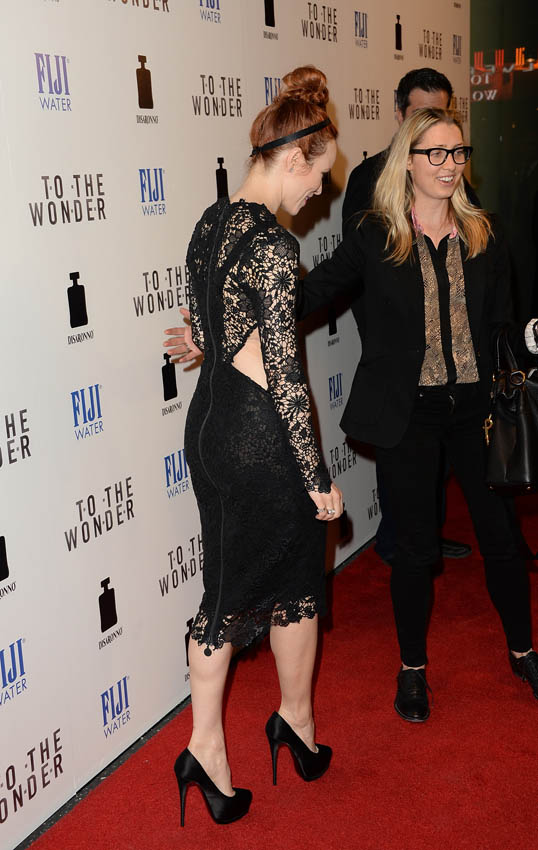 It’s showing up more and more on red carpets – the casual top-knot, or how you wear your hair in the shower. Rachel has hers paired with headband. I don’t totally hate it, and it certainly works on greasy hair days but I’m not sure it’s super flattering. The side cut-outs on her dress however are very flattering. When will satin shoes die?