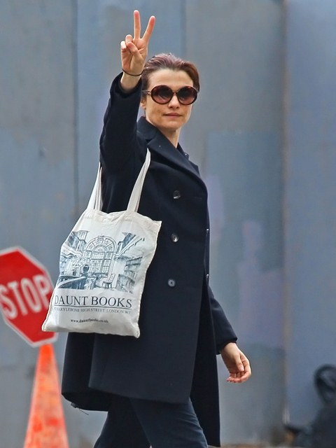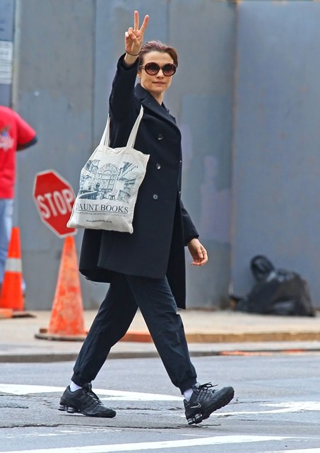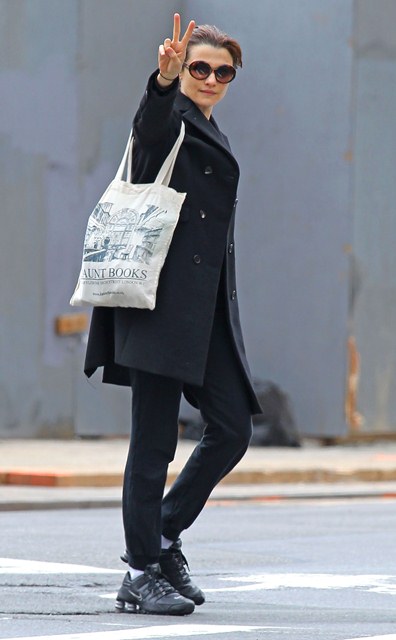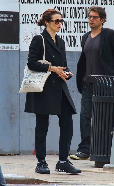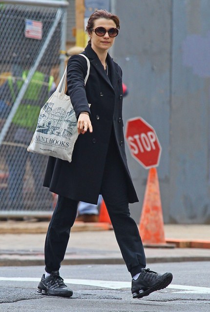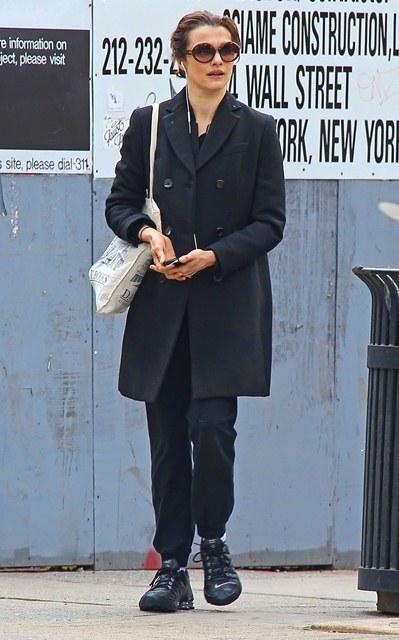 This is about as down-dressed as it gets for a celebrity. And not like “down-dressed by intention” either. Check out Rachel Weisz in New York yesterday. Those are gym pants with cuffed ankles. And white socks. And black trainers. With a reusable grocery bag. No one could argue that this is Style, not even Karl Lagerfeld. And I love her for it. I mean, her coat might be a thousand dollars but by and large, this is – with a $40 dollar version of her jacket - what I look like when I’m walking my dog.