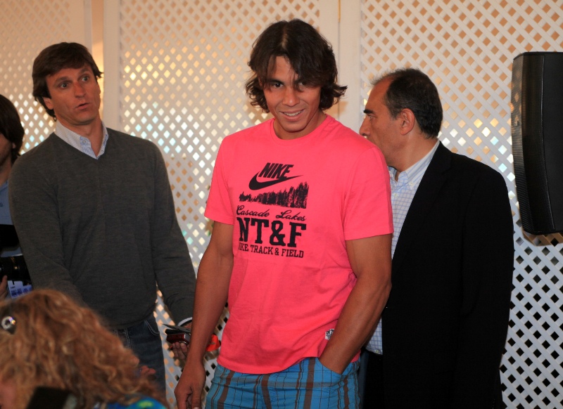 Cat also loves Rafa. She’s at home, and she checks a few times a day, so I thought maybe the sight of him, his abs all sweaty, and so sweet in pink at a presser at the Conde de Godo might help the baby along. Rafa is fresh off winning at Monte Carlo and is looking to defend this title for the 3rd time.