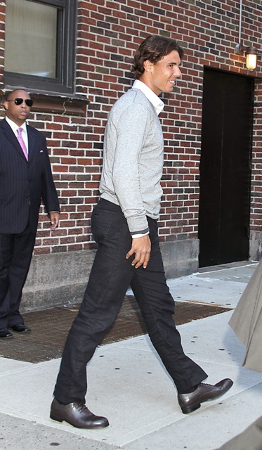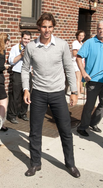 Here’s Rafael Nadal yesterday at Letterman in advance of the tournament. He’s so cute! Rafa is not going in with a lot of momentum. Nagging injuries, inconsistent play, and oh yeah, a motherf-cking stud by the name of Novak Djokovic who is going into the Open with the best record (just 2 losses all season) since McEnroe in 1984 and the only player with 5 Masters Series victories in a season. Djokovic is heavily favoured. And Rafa is coming in as the #2 seed.