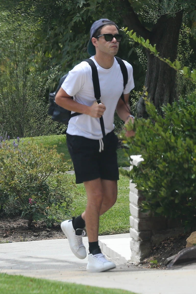 Here’s Rami on his way to play tennis yesterday. He’s actually been photographed a few times lately heading to his tennis match or lesson, which is what the paps are calling it. I wonder if he’s always played or if it’s a recent obsession. Rami was seen at the French Open back in June, and now, with the frequent tennis lessons, maybe he’s become hooked.