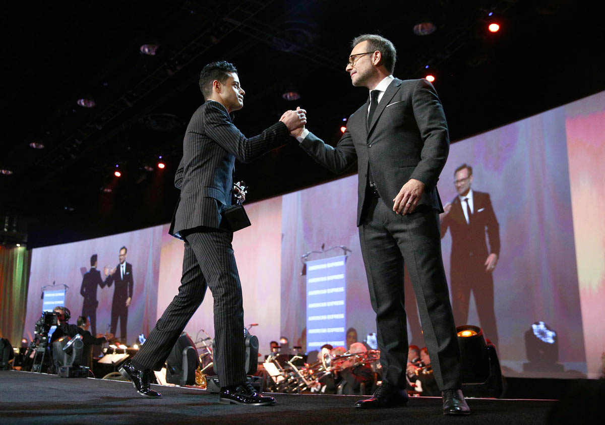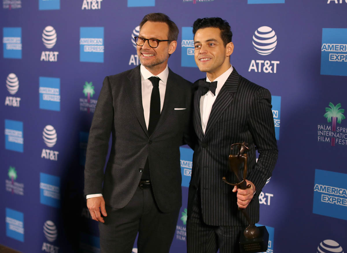 To my knowledge, this is the first time Rami has been publicly recognized for his transformative turn as Freddie Mercury. As for what’s ahead… well, he just might win this weekend at the Globes. Variety selected Rami as their likely winner and judging from the audience reaction from the Palm Springs crowd — which includes a lot of Academy voters and demographics that seemingly also reflect the HFPA pool — this could very well be his first speech of many. Everything starts around the 43:20 mark on the livestream, which only about 100 unapologetic film nerds (me being one of them) were watching live last night.