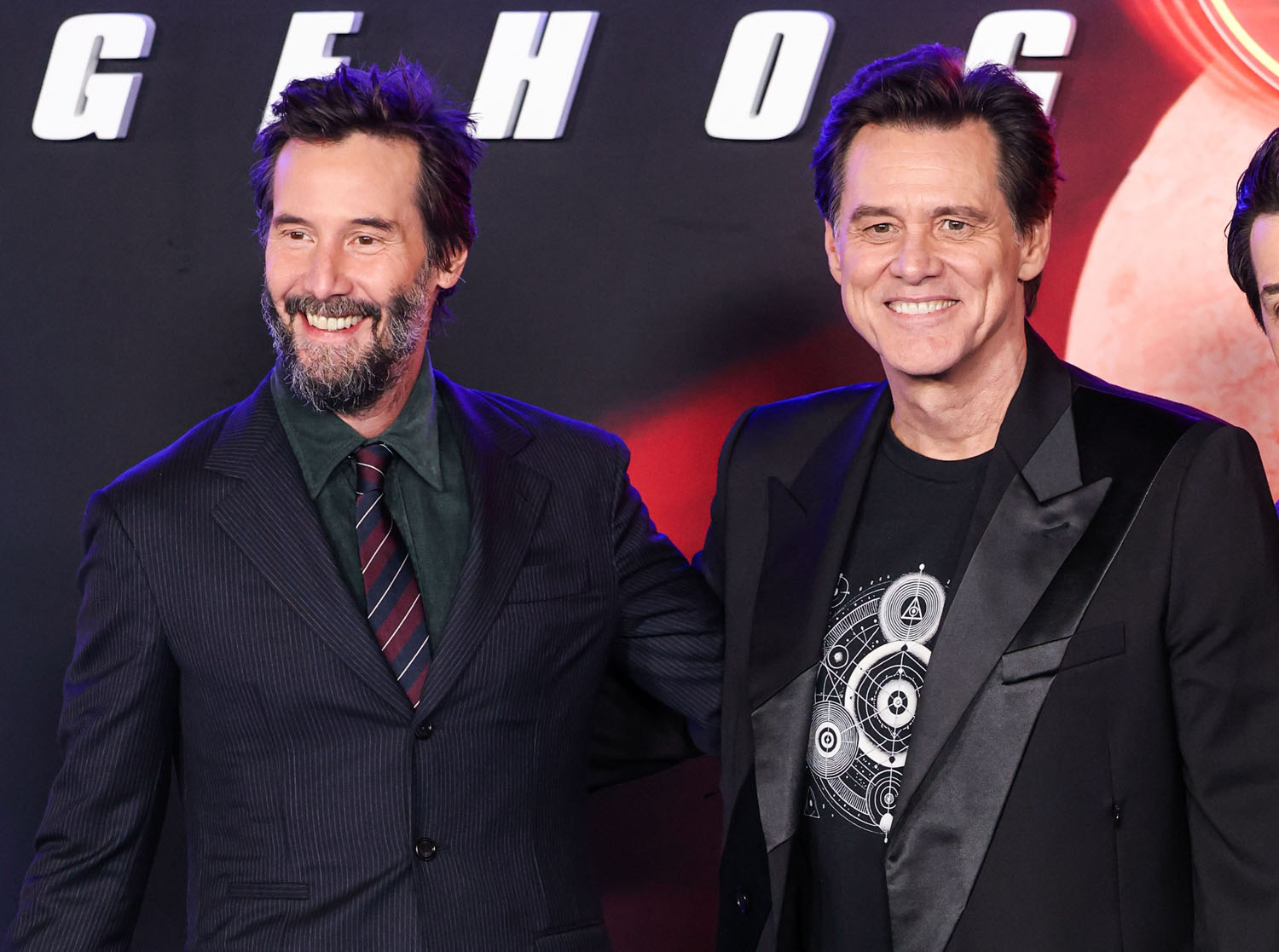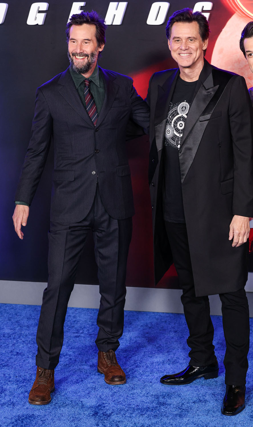 Photos like this, where I’m from, are kind of a big deal. I’m off from ETALK until the New Year but if I had to guess what would be leading our show content today, it would be that Jim Carrey and Keanu Reeves were at the premiere of Sonic The Hedgehog 3 last night in LA.