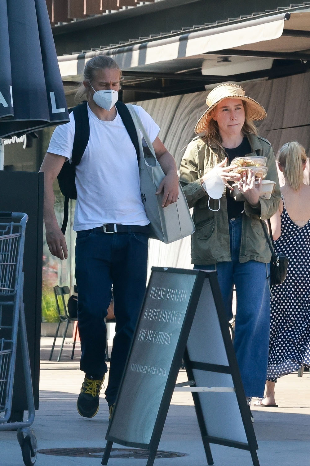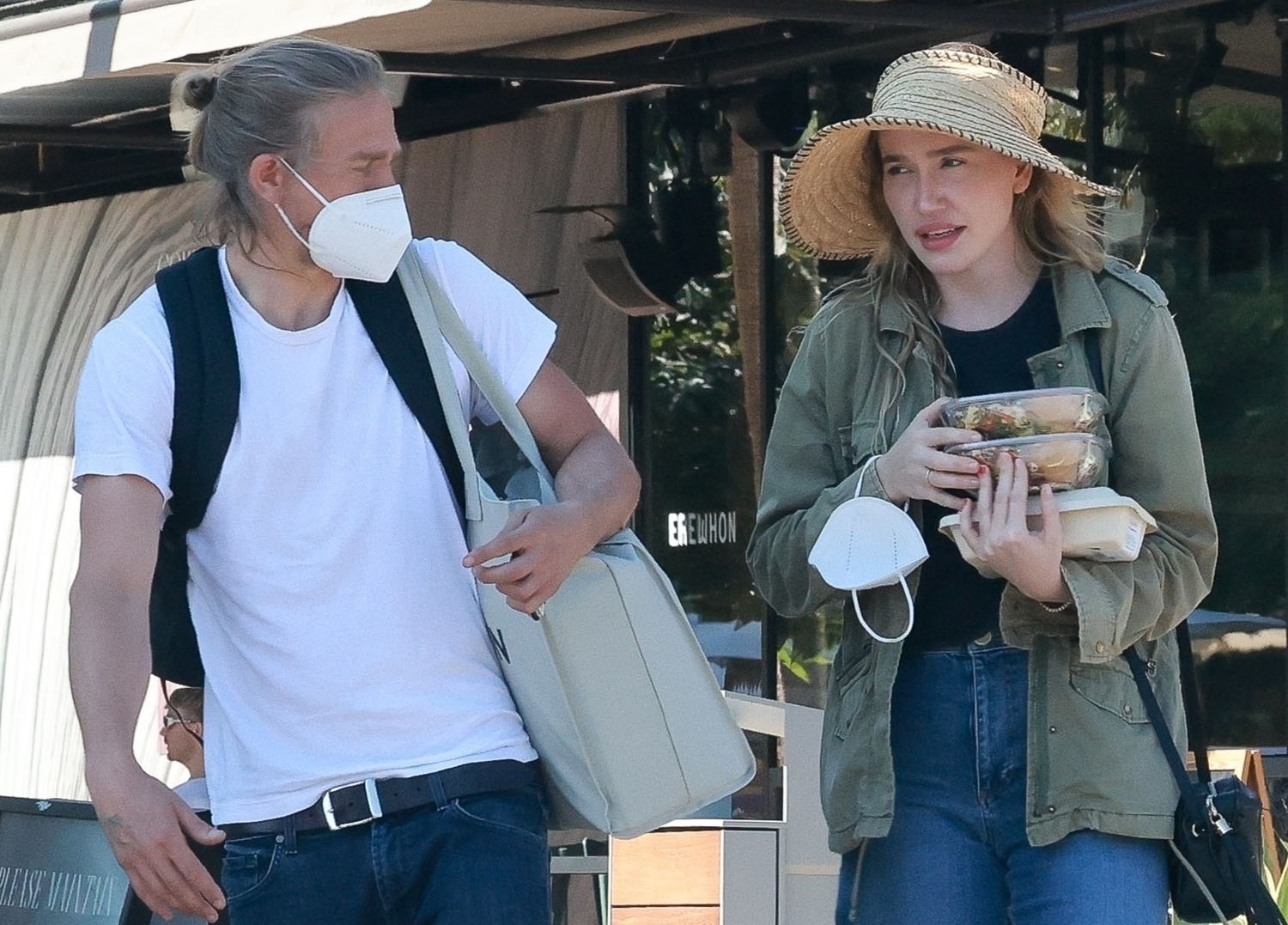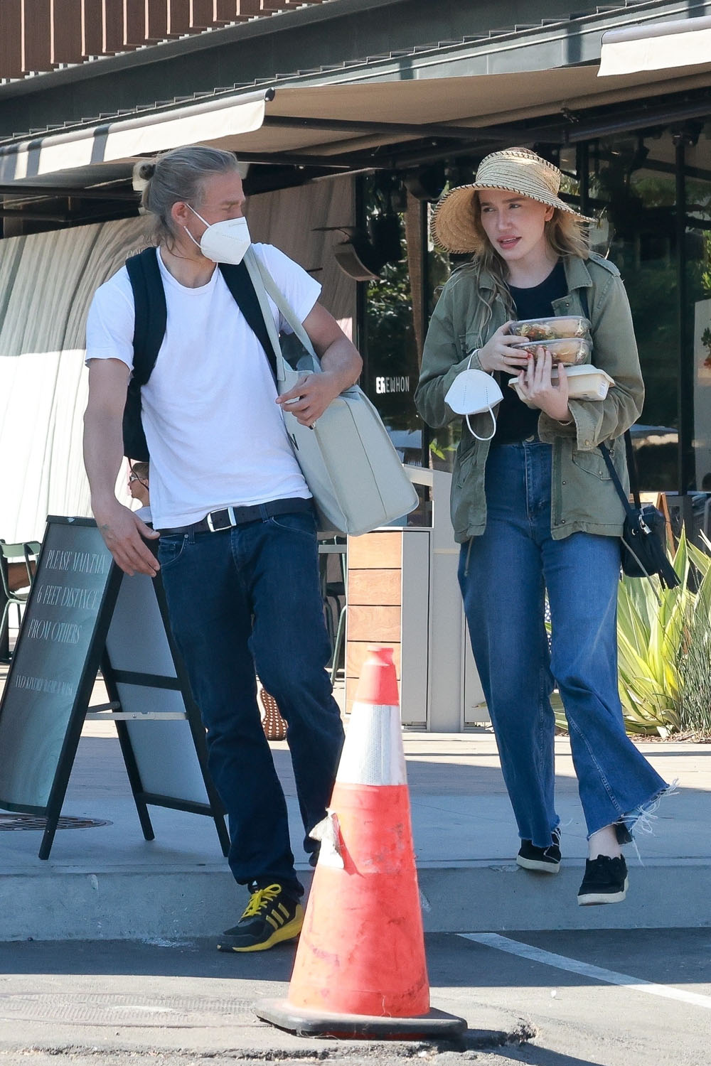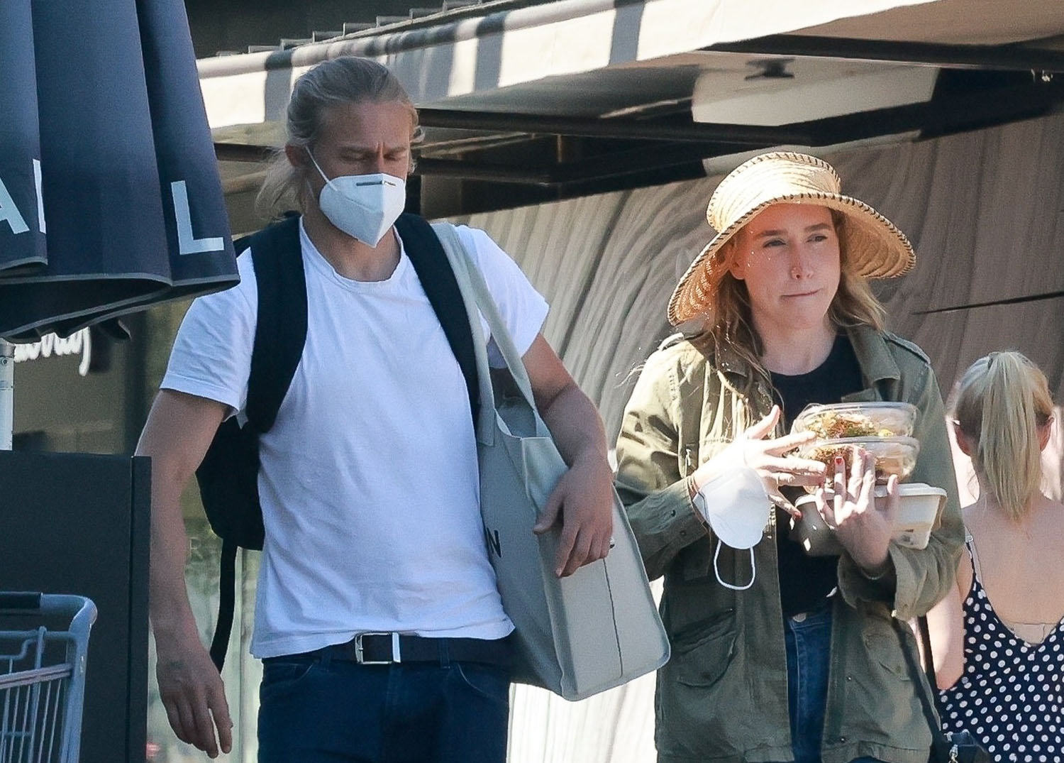 Maria just mentioned recently in Celebrity Social Media what a low profile Charlie Hunnam has maintained over this ongoing pandemic. Even when restrictions started easing, he was pretty undercover. So this is a rare sighting indeed of Charlie, with his longtime partner Morgana McNelis, out for groceries the other day in LA.