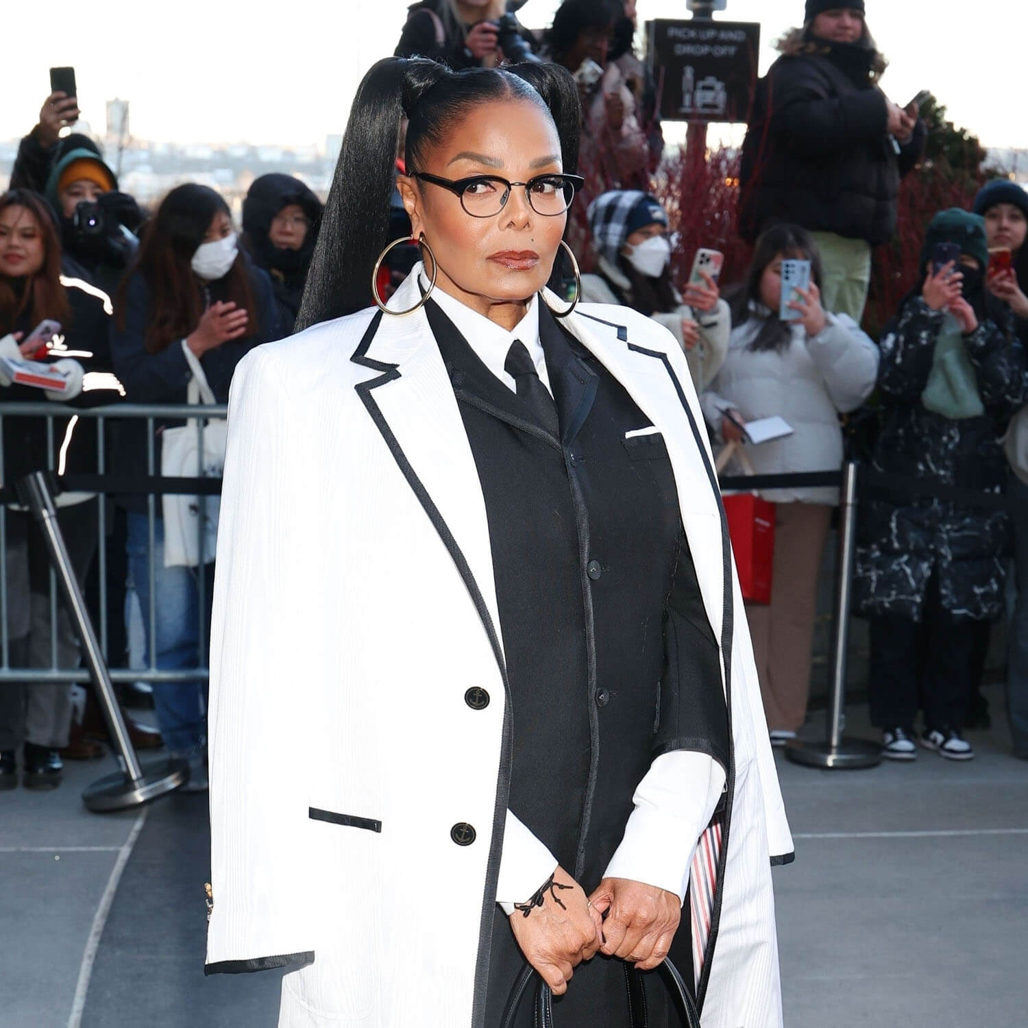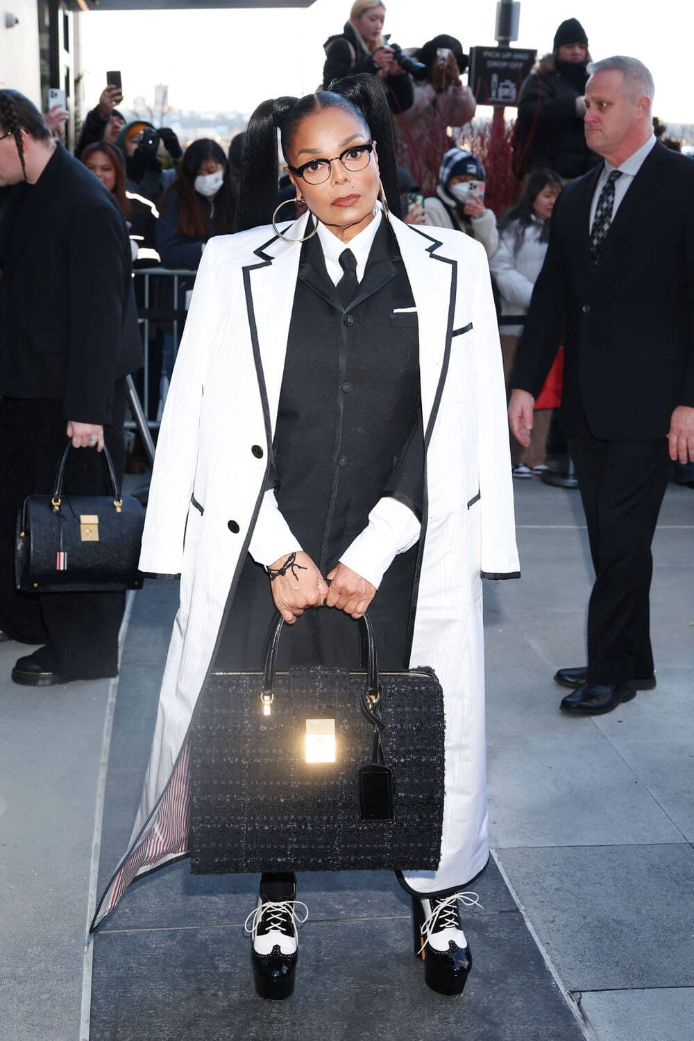 If you visit this site often, you might be familiar with my affinity for Thom Browne. Thom Browne is my whole style lane. So the Thom Browne show, for me, is the New York Fashion Week presentation that I look forward to the most. And look who Thom Browne was able to bring out – a person who stays super undercover, so when she shows up, you know it’s a big deal: Janet Jackson.