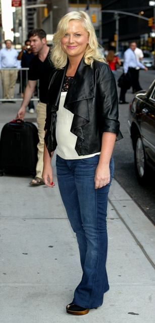 Rashida is currently starring in Amy Poehler’s Parks & Recreation and is also tight with the Judd Apatow circle. Here she is at the premiere of Funny People last night. Amy meanwhile paid a visit to Letterman. I didn’t watch. Was she amazing?