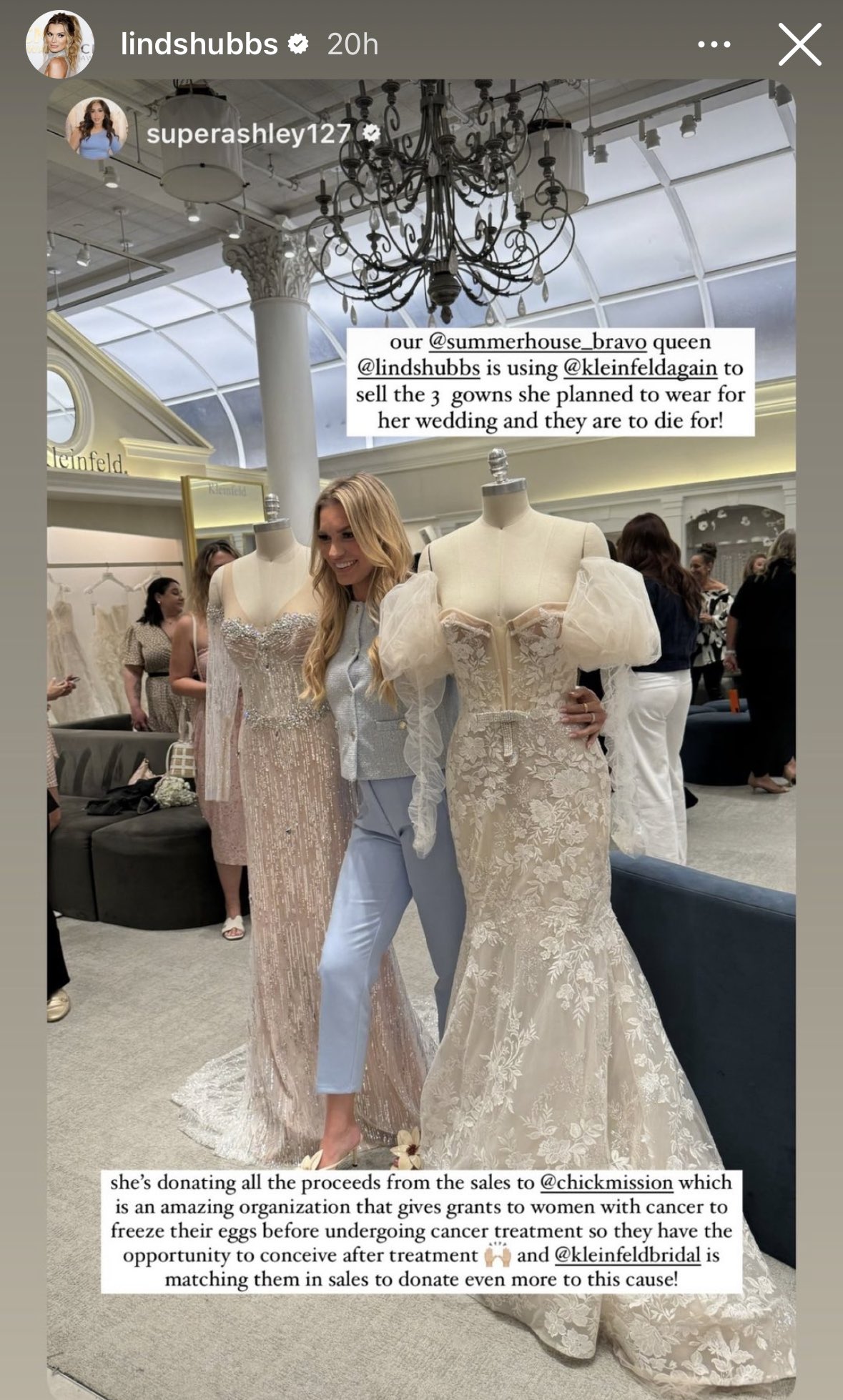 Recently, it was announced she would be selling the three (yes, you heard that right) wedding gowns she planned on wearing during her nuptials to Carl in order to donate the proceeds to women who were about to undergo chemo and needed to freeze their eggs.