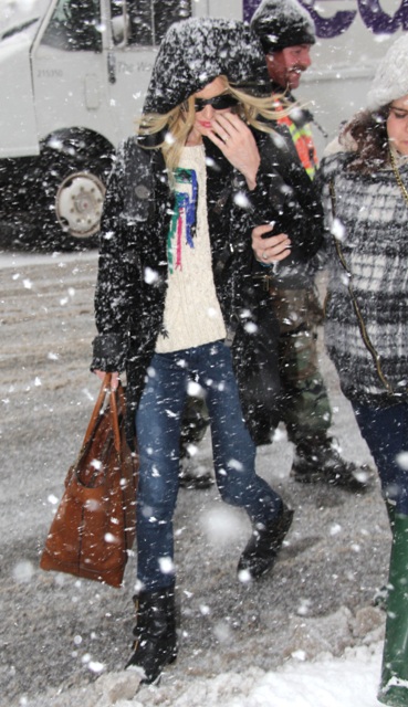 Anyway, back to the weather - these were straight up WINTER conditions. There was over a foot of fresh snow on the ground. The ploughs couldn’t get to everything in time. What to wear if you’re a celebrity promoting your film? You want to look stylish but, you’d think, you also want to be warm, practical, right?