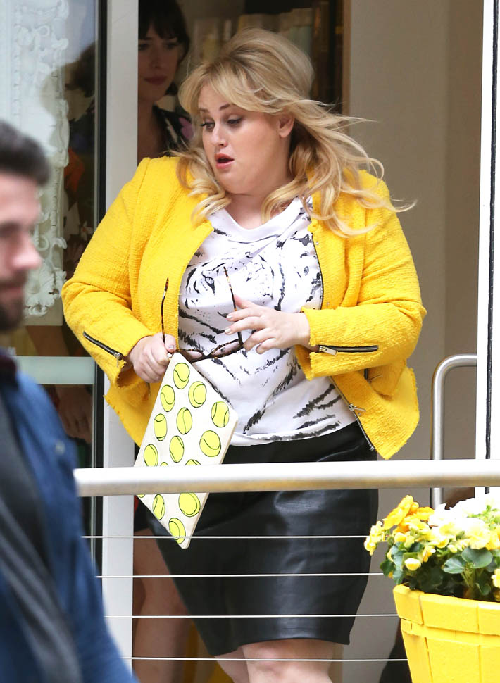 Attached - Rebel on the set of How To Be Single which she is currently shooting in New York with Dakota Johnson.