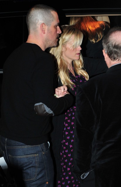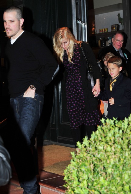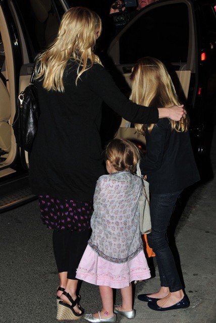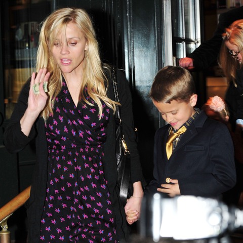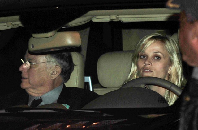 Until Reese Witherspoon becomes a wife again. At least according to Radar as they were the first report that the Witherspoon/Toth wedding would happen on March 26th. More evidence of that was provided last night as Reese, in mom wedges and a cardigan, and Jim and the children hooked up for dinner with family members on both sides.