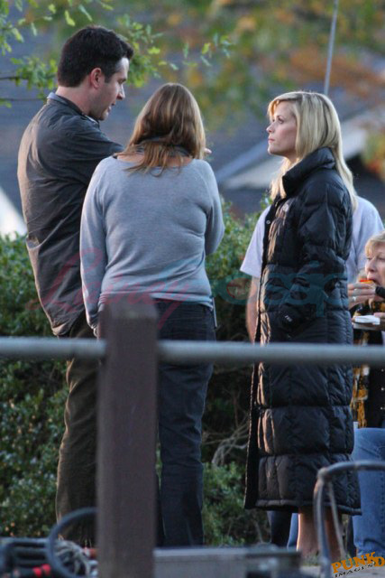 Reese Witherspoon was on set with Tom Hardy yesterday in Vancouver for This Means War. She’s really popping in these shots, so lovely right now.