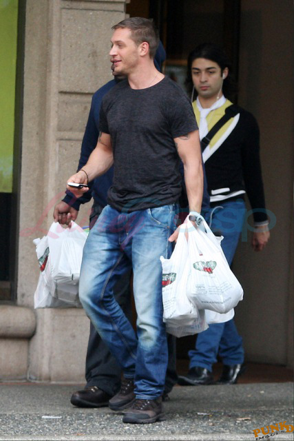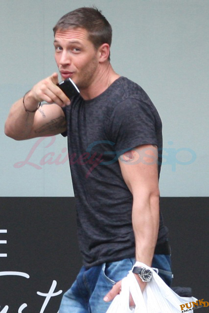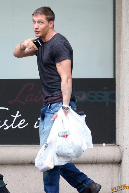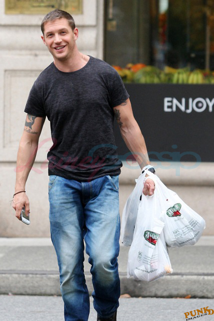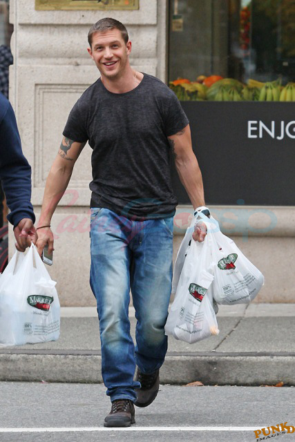 Am also attaching fresh photos of Tom Hardy picking up groceries at the end of the day. And a great story from my friend Marty. Marty lives around there and he happened to be in the store on the weekend when Tom stopped in for a few things. Of course Marty noticed him. He’s hot. Why not?