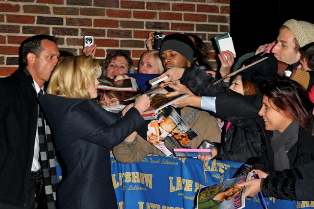 Reese Witherspoon outside Letterman studios today for an appearance with David to promote Four Christmases in theatres tomorrow. She’s been working hard on the promotional trail, on the carpet, morning chats, magazine covers, and shouldering the responsibility for the movie, the sole face of the film thus far, even though she’s supposed to have a co-star. His name is Vince Vaughn who has been completely invisible throughout the entire press tour.