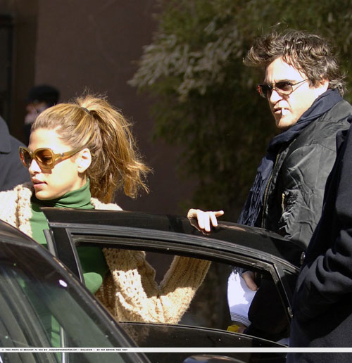 Gossip related to Joaquin"s personal life is hard to come by. The man has a tight camp and they don"t talk about him outside of his career, especially considering how damaged he was after hearing his own 911 call played over and over and over again when his brother died. What you do get however are pretty good reports from the set and how that information looks depends entirely upon his involvement in the role. Joaquin is method all the way. Which means on Gladiator, he was a creepy asshole. For The Village, he barely spoke. And during Walk the Line, he answered only to John or JR. You all know already about he unrequited love he had for Reese Witherspoon so these recent stories about him and Eva Mendez shouldn"t come as a surprise to anyone. They are costarring in a movie called We Own the Night. He plays a bar manager, she his girlfriend, and I hear it has been electric during rehearsals. So electric that it"s hard to be in the same room during readings. Excellent chemistry, on and off. While her publicist has insisted that she"s still with her long term boyfriend, word is she"s trying hard to fight her attraction, especially since they voluntarily agreed to spend more and more time together to get intimate with their characters. Eva Mendez is an excellent choice, if you ask me. She is gorgeous, she seems to have a pretty good relationship with food, she has not f&cked half of Hollywood, and she has no history of mental illness or criminal activity. In other words, Eva has my approval 100%. So if for some reason Joaq"s path does not lead to my loins, I"m totally OK with losing out to Eva Mendez. In fact, I can think of a lot worse.