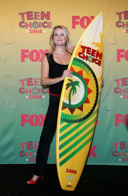 All that hysteria at the beginning of the summer…all the speculation…all for naught. But – shameless gloat coming up – if you were reading my column, you would have known otherwise…right? Reese showed up to collect her surfboard tonight, skipping the carpet, pretty much leaving as soon as her award was announced, not a bulge in sight, slimmer than she’s been in months, every hair, every white tooth, every polite, southern, sickeningly sweet bone perfectly in place. And please…save it with the indignant emails about my cynicism, my bitchiness, my reluctance to believe it’s as good as it looks. Because curiously enough, every time there’s a riddle or a blind item, in this column or any other, about a crumbling marriage or a badly behaved actress, one of the first guesses is always, always Reese Witherspoon. Me cynical? Yes, of course. But you too, non?