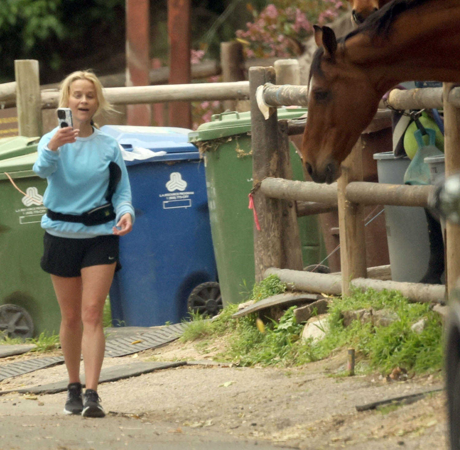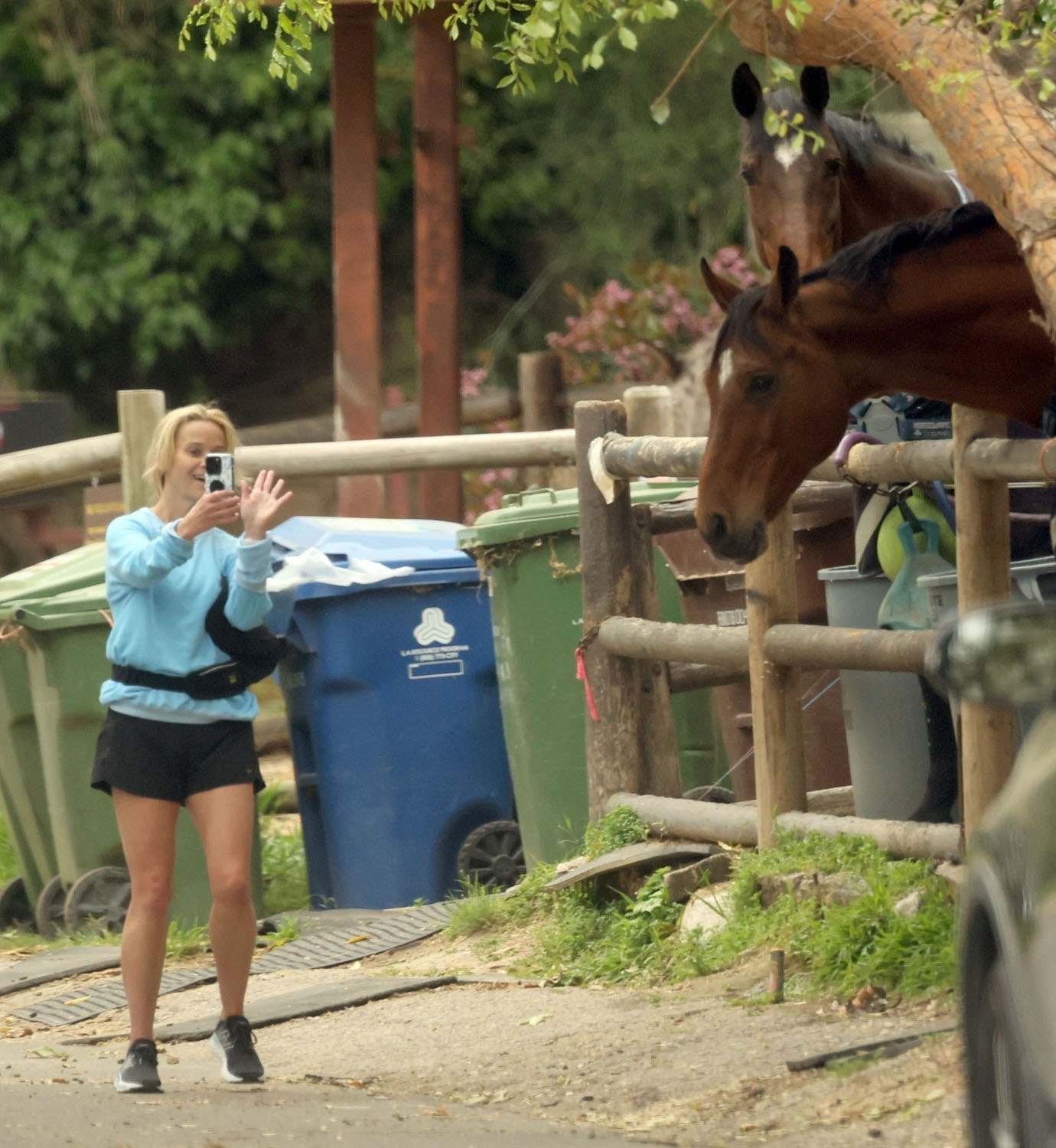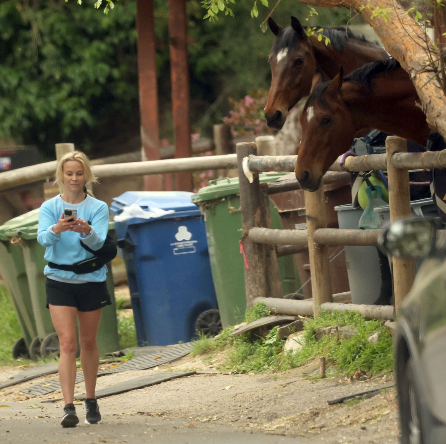 But like, pronounce it like “Reesee’s Peesees”. Here’s a sidebar fight to start: Do you say “Reese’s Pieces” or do you do the deliberate mispronunciation of “Reesee’s Peesees”? I THINK this might be a north/south thing, because I grew up with “Reesee’s Peesees” in Texas, but it became “Reese’s Pieces” when we moved to Illinois. Anyway! Here is Reese Witherspoon posing with some horses in Los Angeles.