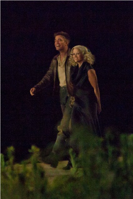 I’m the first to admit we need drama. Love it. Which is why the tabloids will inevitably spin (and probably already have) that Reese Witherspoon and Robert Pattinson are hooking up on the set of Water for Elephants. Because they look happy in these photos taken just before the weekend on a night shoot. He really should keep this hair. This is his best hair. I can’t get over this hair. Even I find him attractive with this hair. And smiling and not constipated.