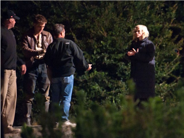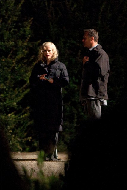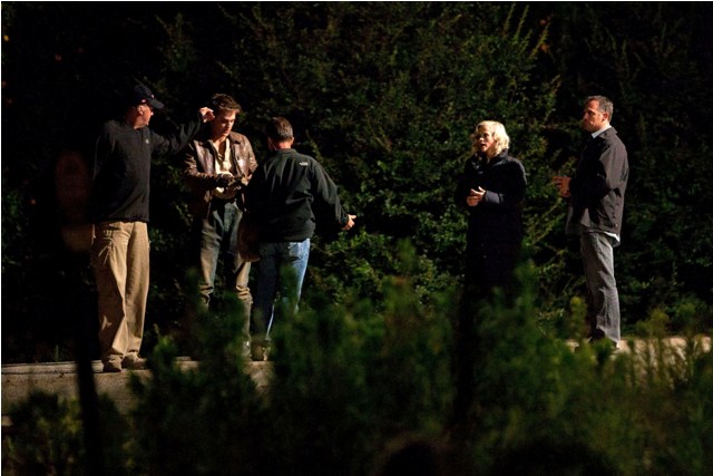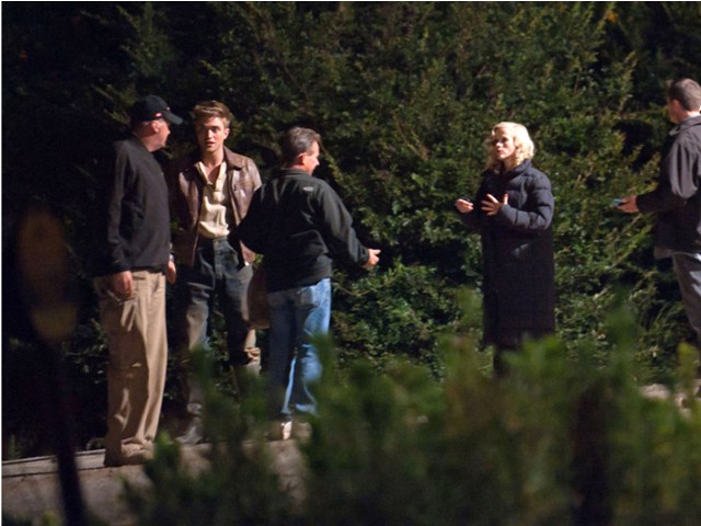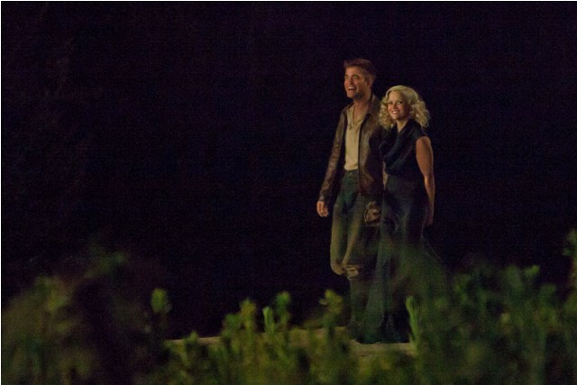 I’m the first to admit we need drama. Love it. Which is why the tabloids will inevitably spin (and probably already have) that Reese Witherspoon and Robert Pattinson are hooking up on the set of Water for Elephants. Because they look happy in these photos taken just before the weekend on a night shoot. He really should keep this hair. This is his best hair. I can’t get over this hair. Even I find him attractive with this hair. And smiling and not constipated.