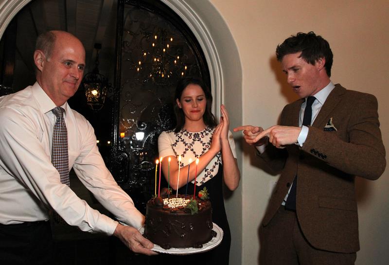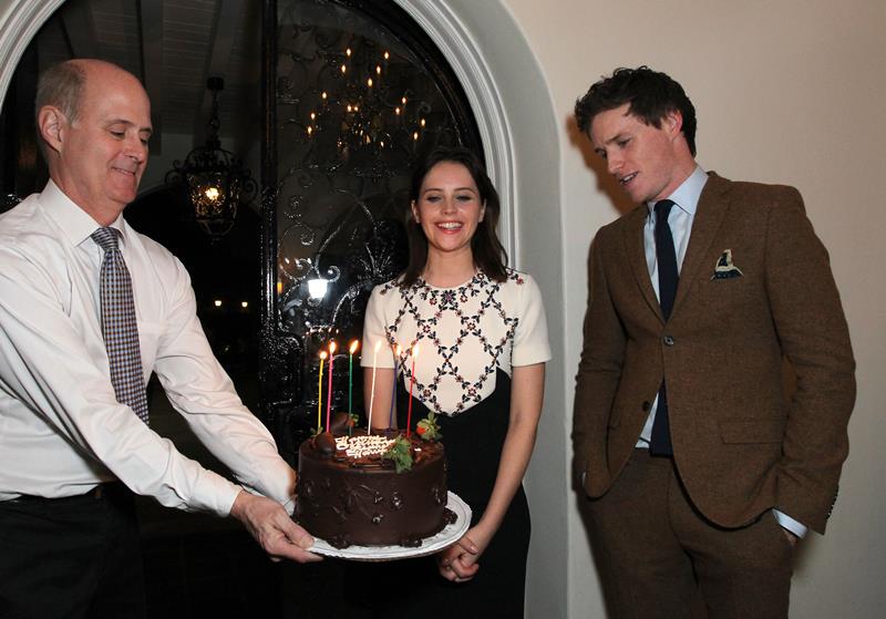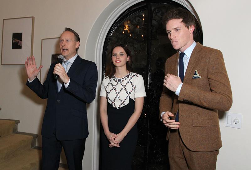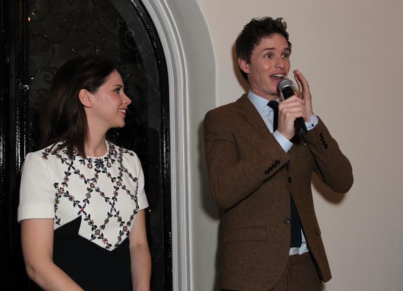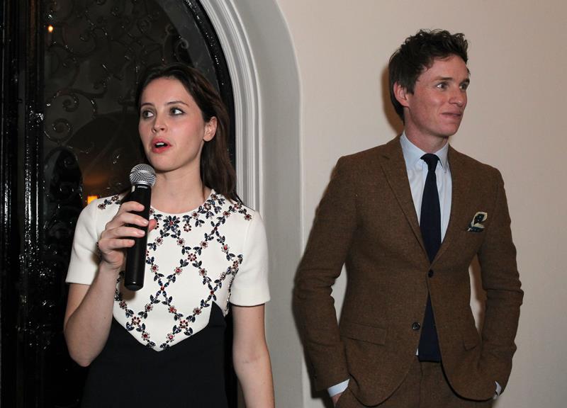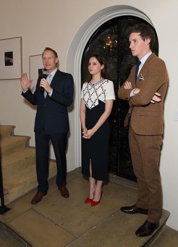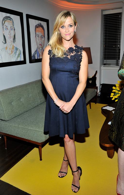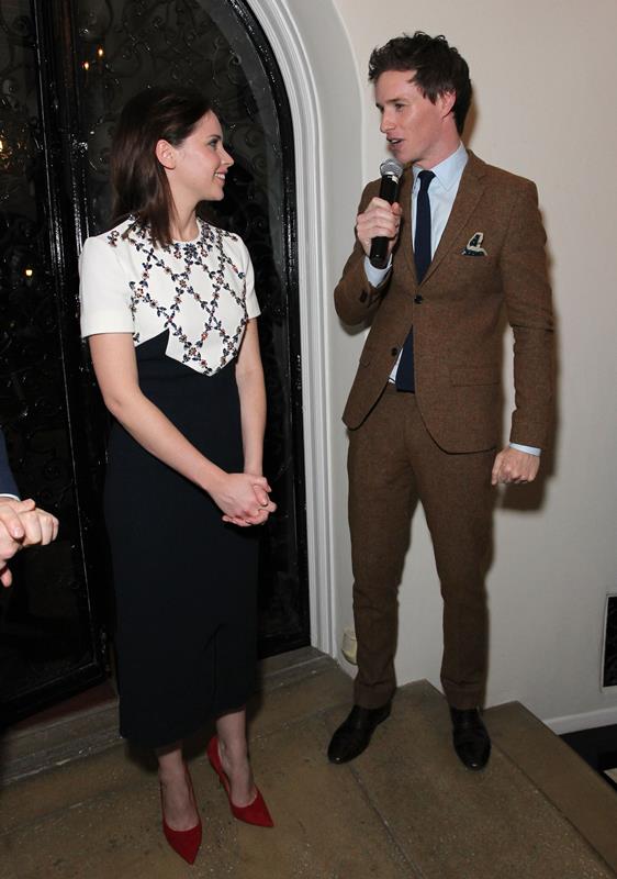 Three Best Actress contenders were out last night in Hollywood before the Golden Globes. Reese Witherspoon and Rosamund Pike were both at the W Magazine party at Chateau Marmont while Felicity Jones attended a reception at the British Consulate with Eddie Redmayne to celebrate The Theory Of Everything. (Am obsessed with everything that Rosamund has been wearing this week. Check out this baby doll dress with the flutter cap sleeves. I LOVE it.)