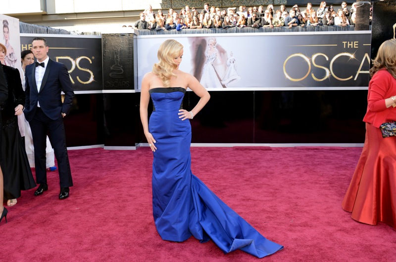 Then, she turned around, and while I will get to the squished boobs and that awful forsaken bow, I just want to point something else out first – I had to find out on Getty that the dress was royal blue. More than one TV read it as several tones off from where it actually was. People, I would like to personally start a business called True Colour Lenses, where you can bring your dress to a simulated red carpet atmosphere so you can see what colour it’s going to read as on camera. I’ll charge $60 a pop, you can feel good that you paid your stylist exorbitant amounts of money and that you got what you paid for.